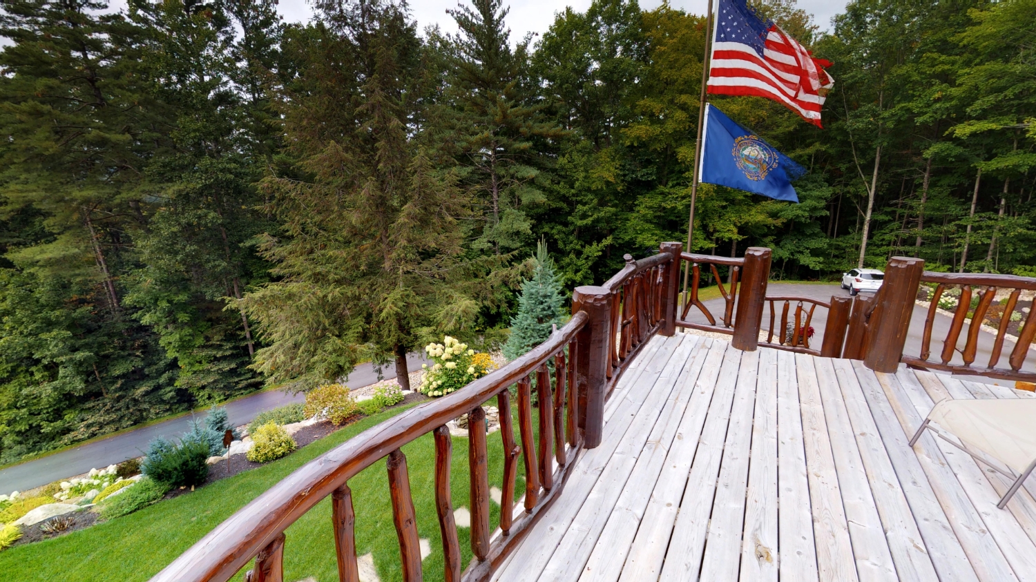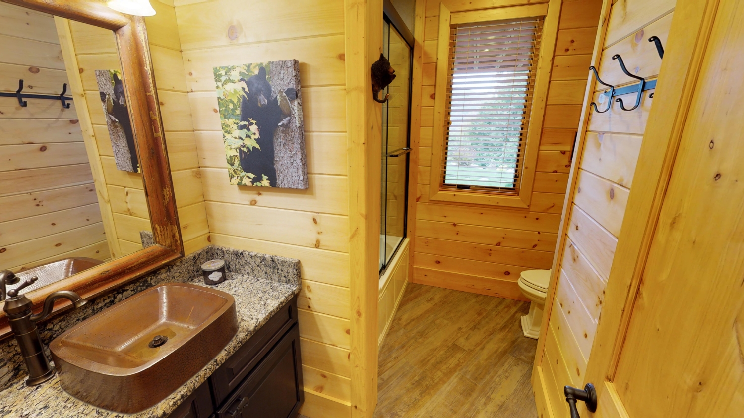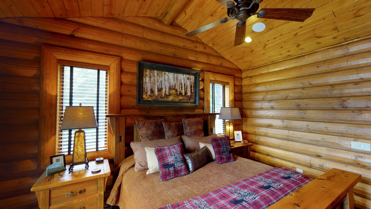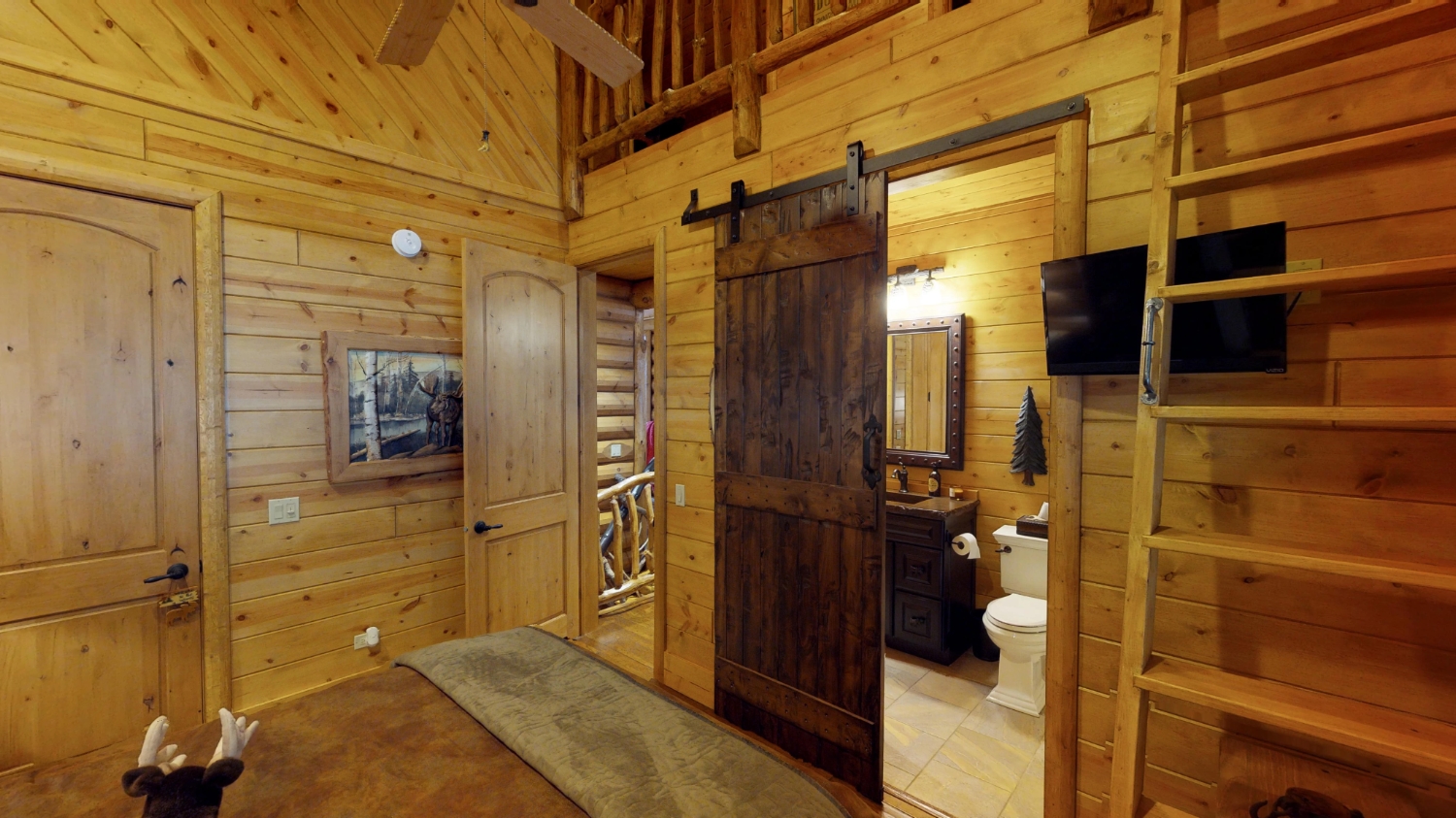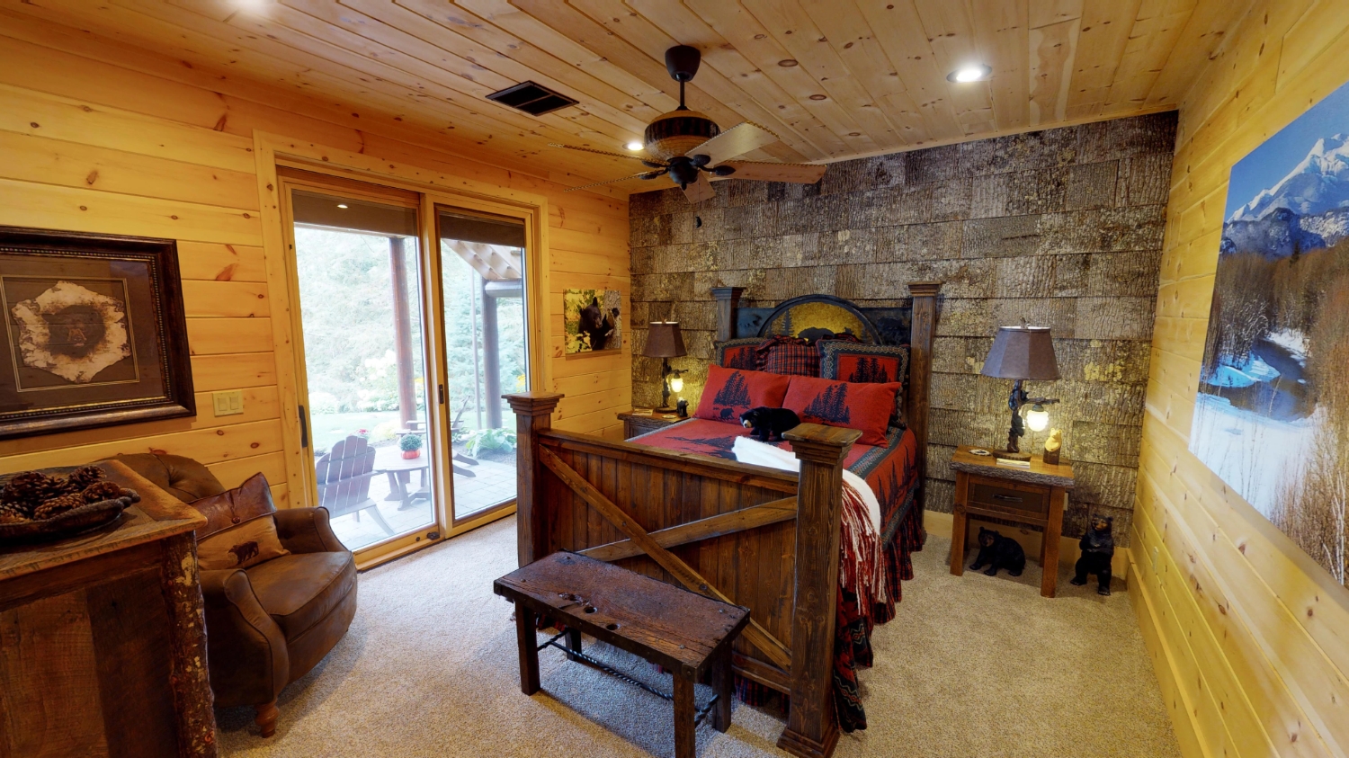 This stunning Custom South Carolina 2310AR is perched on a hillside with a view of the nearby mountains. When coming up the driveway you are given an amazing view of this majestic log home. Inside you see a number of wall types. It is a buffet of visuals for the eyes.