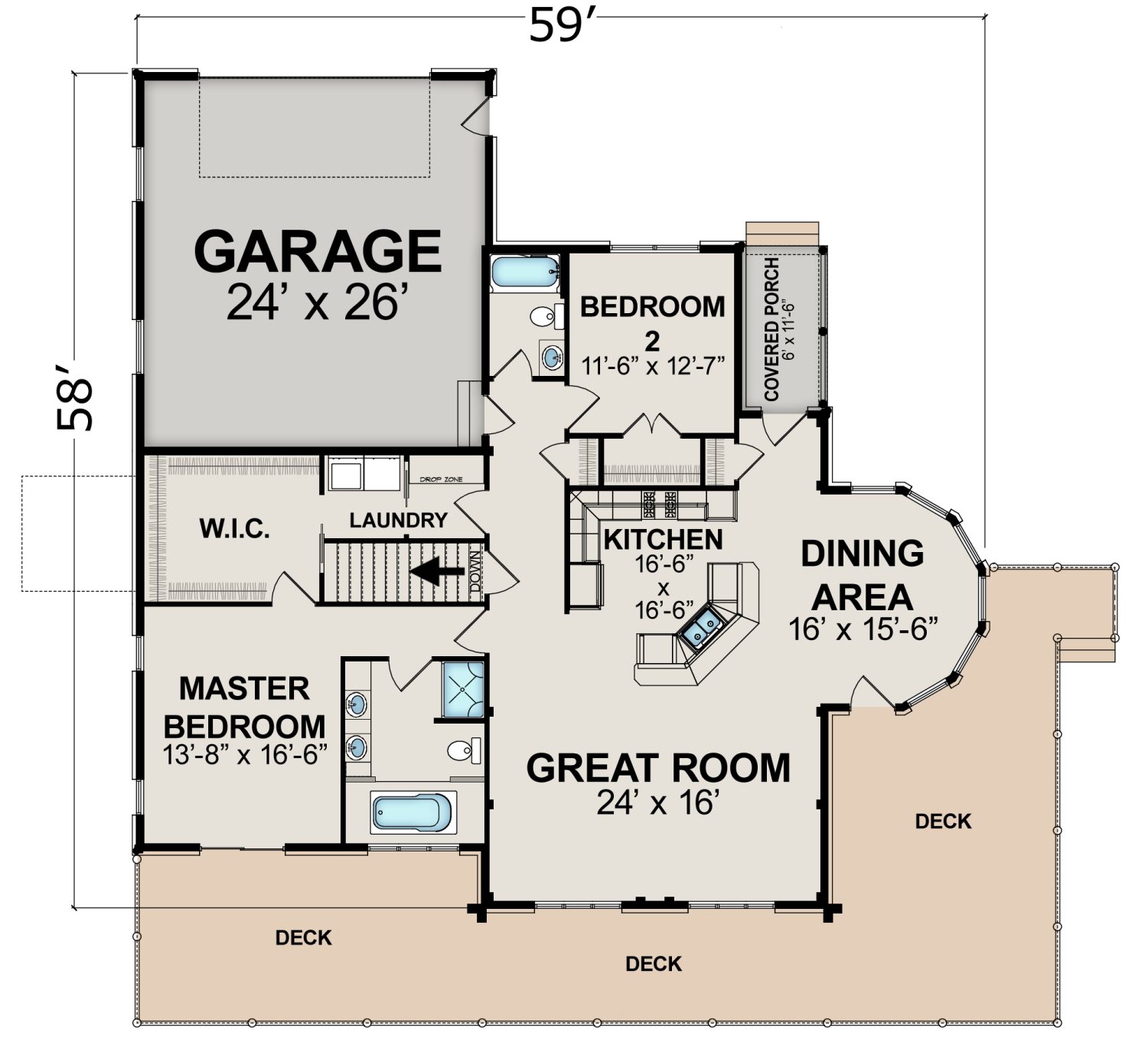 A Client Modified - Hybrid Timber Frame Log Home - North Carolina 1861AR Floorplan