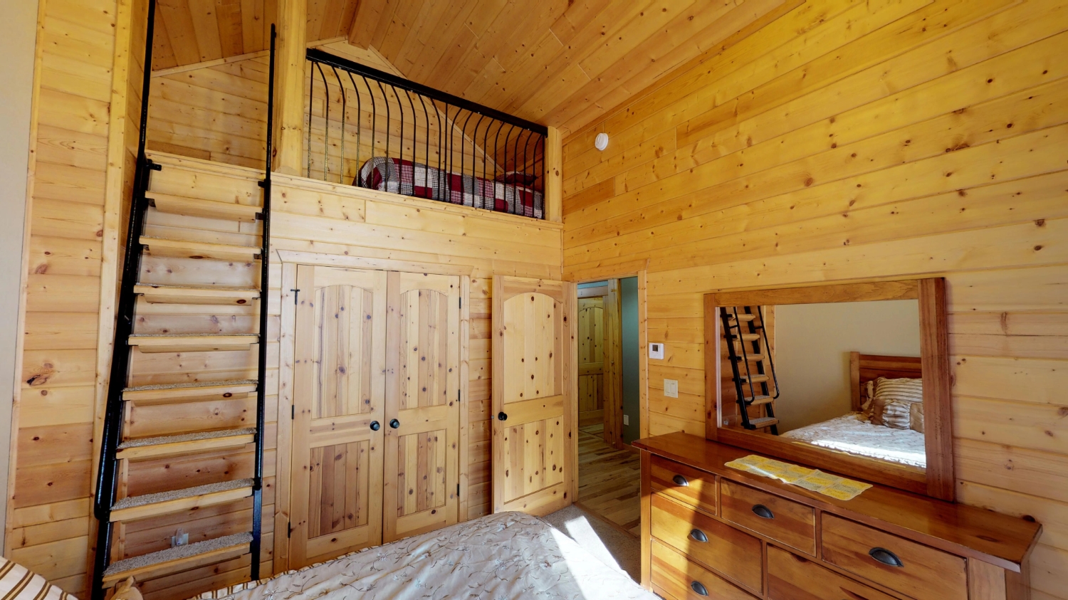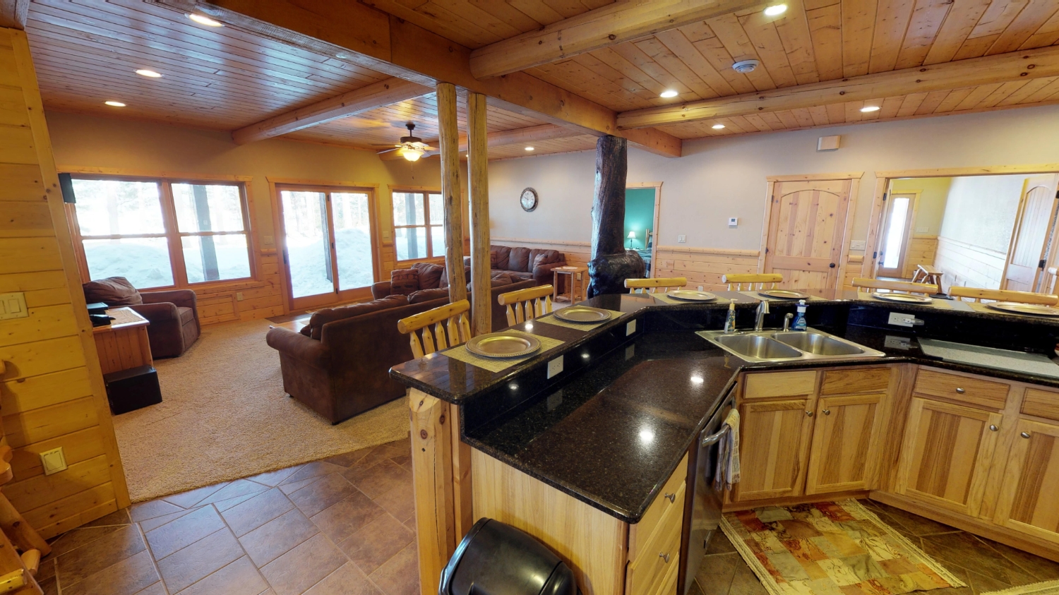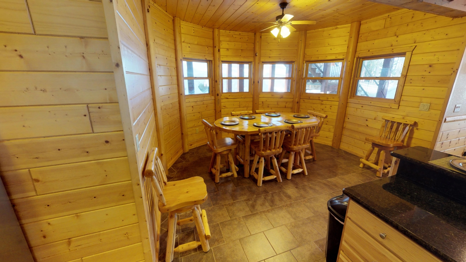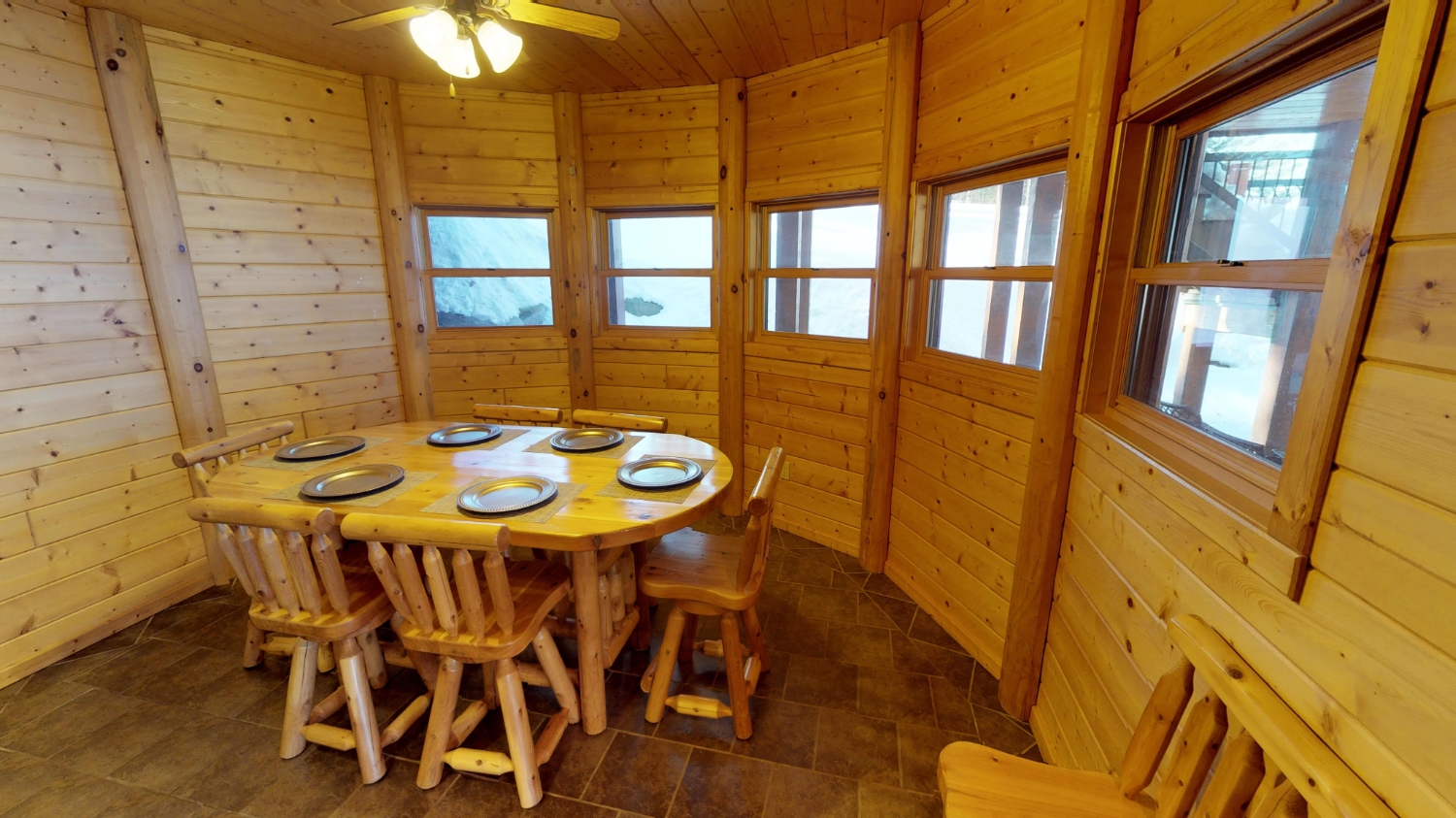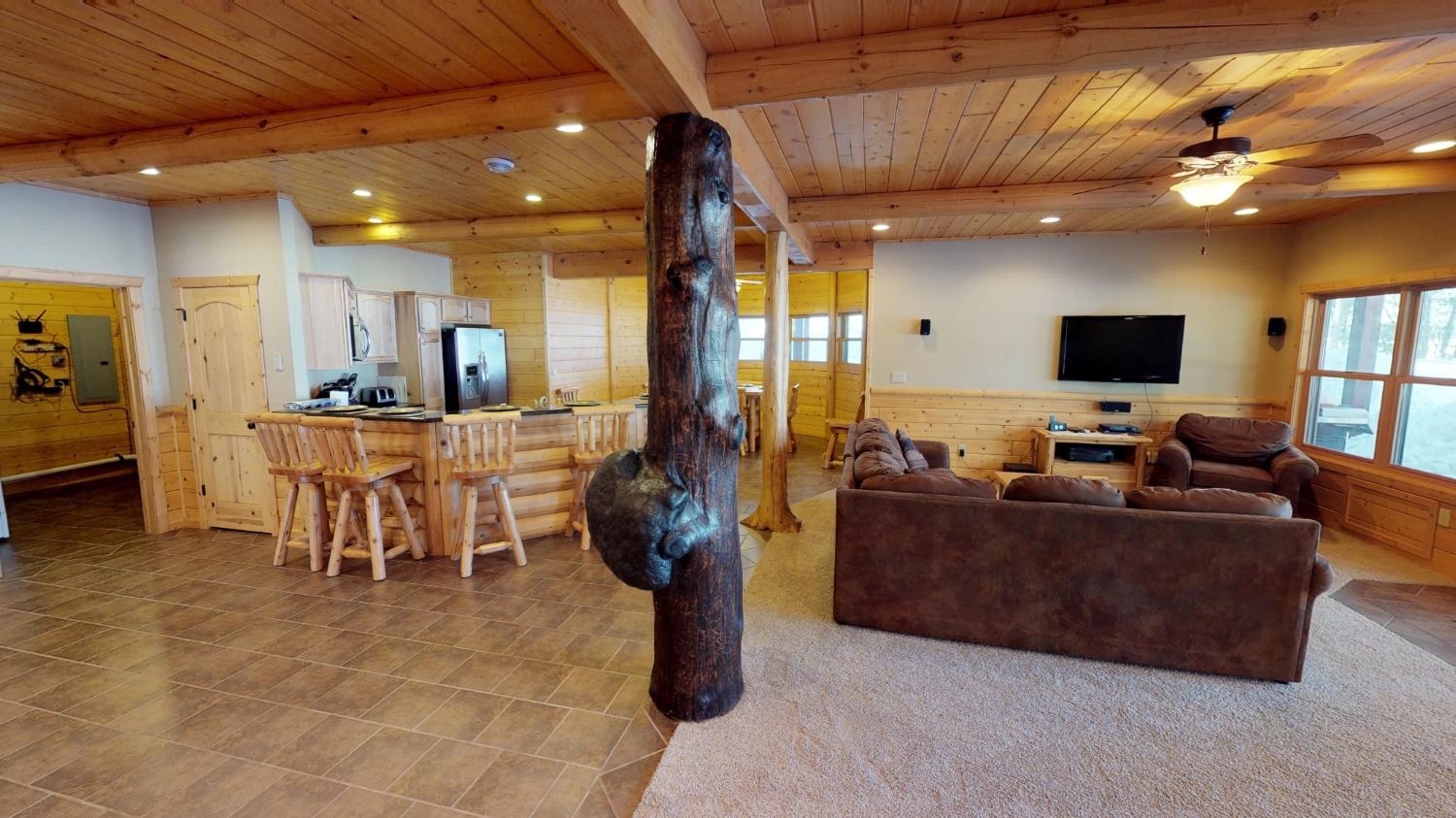This log Hybrid Timber Frame log home has a lot of open space and yet still has a number of places that you can go to have your own space. It even has a mini loft hideaway. The octagon dining areas offer a breath taking view while pouring daylight into the home. The master suite walk-in closet has an enormous amount of space. It's a room of its own. This home is ideal for having guests and hosting large family events.