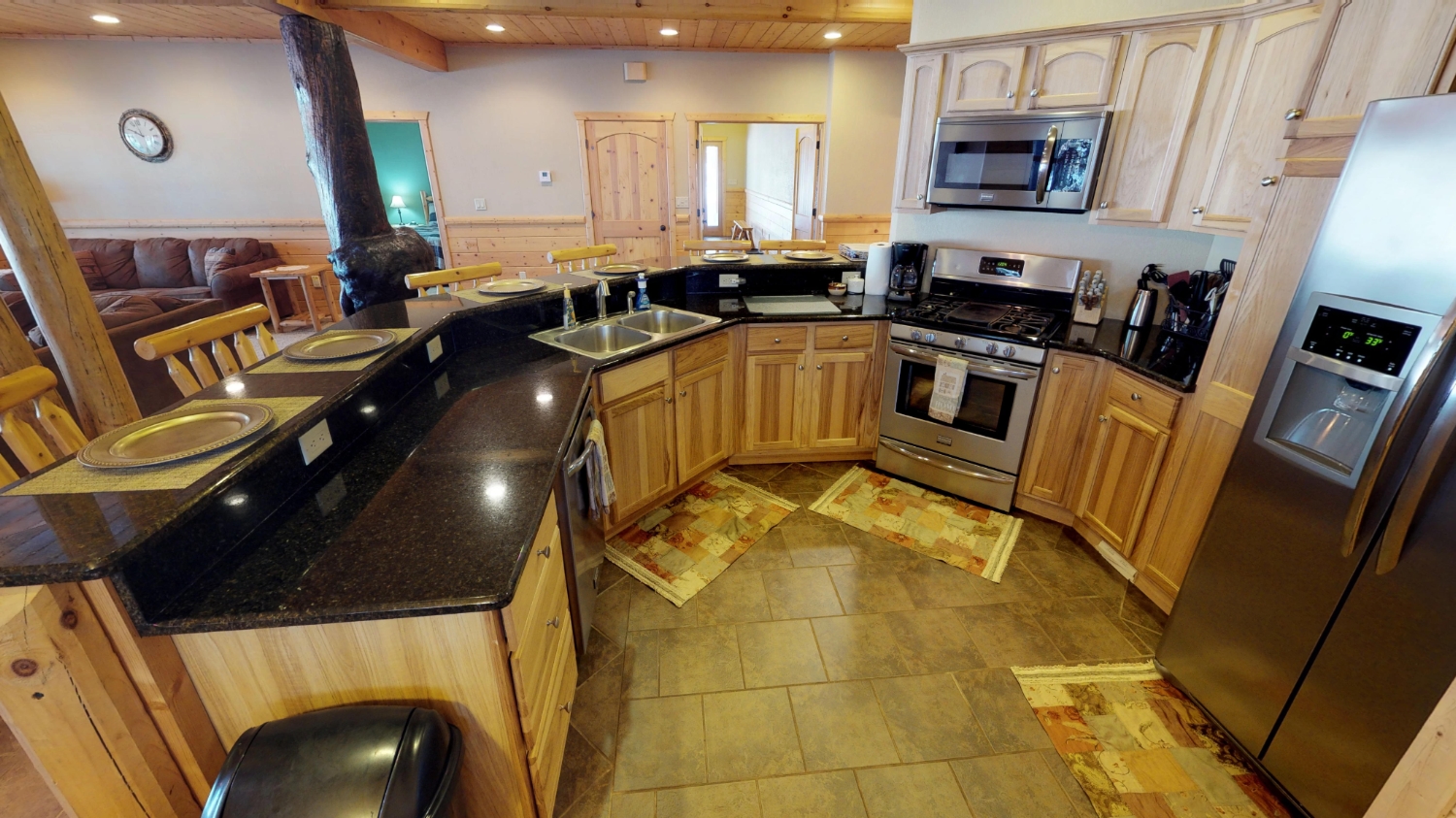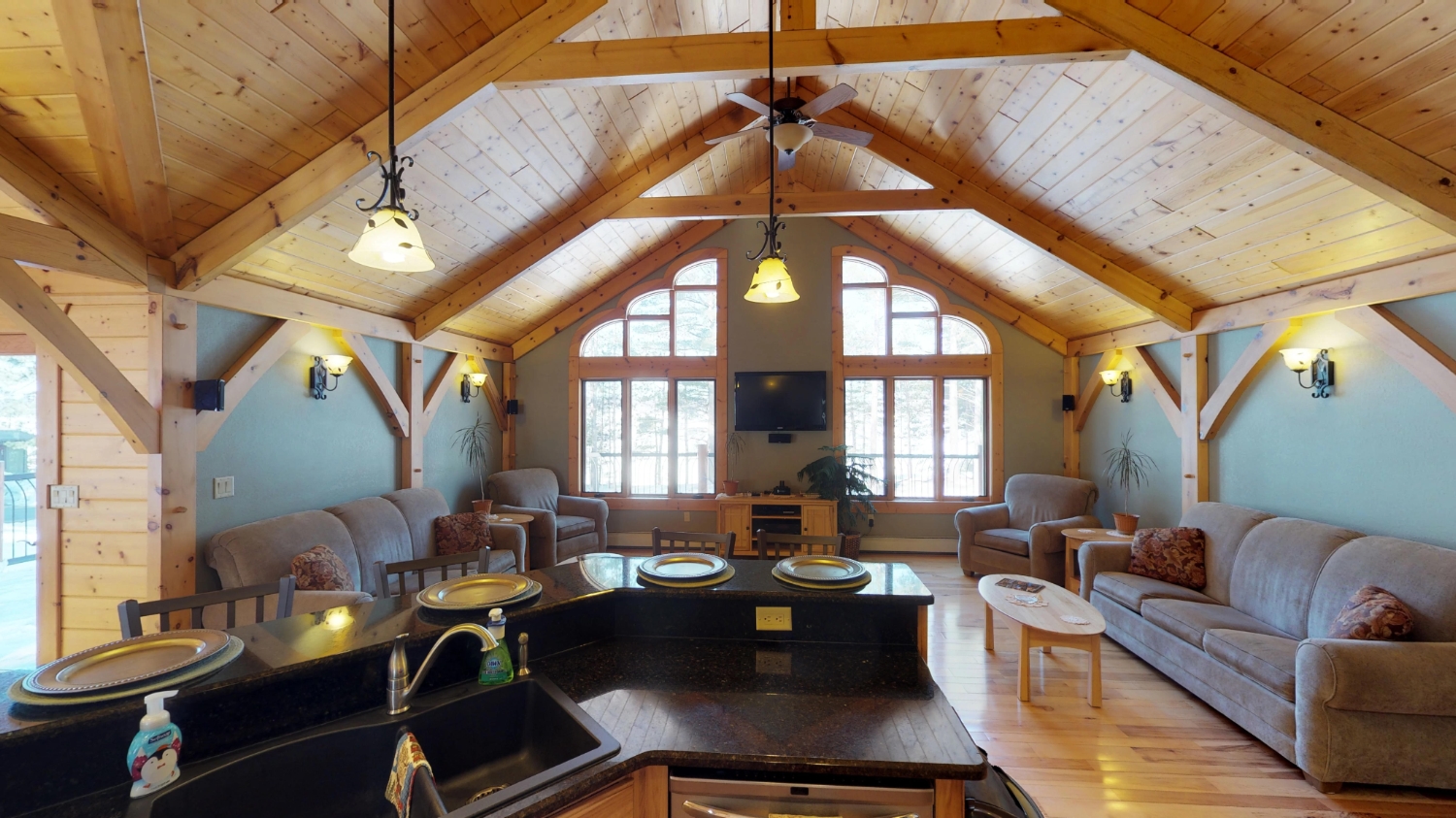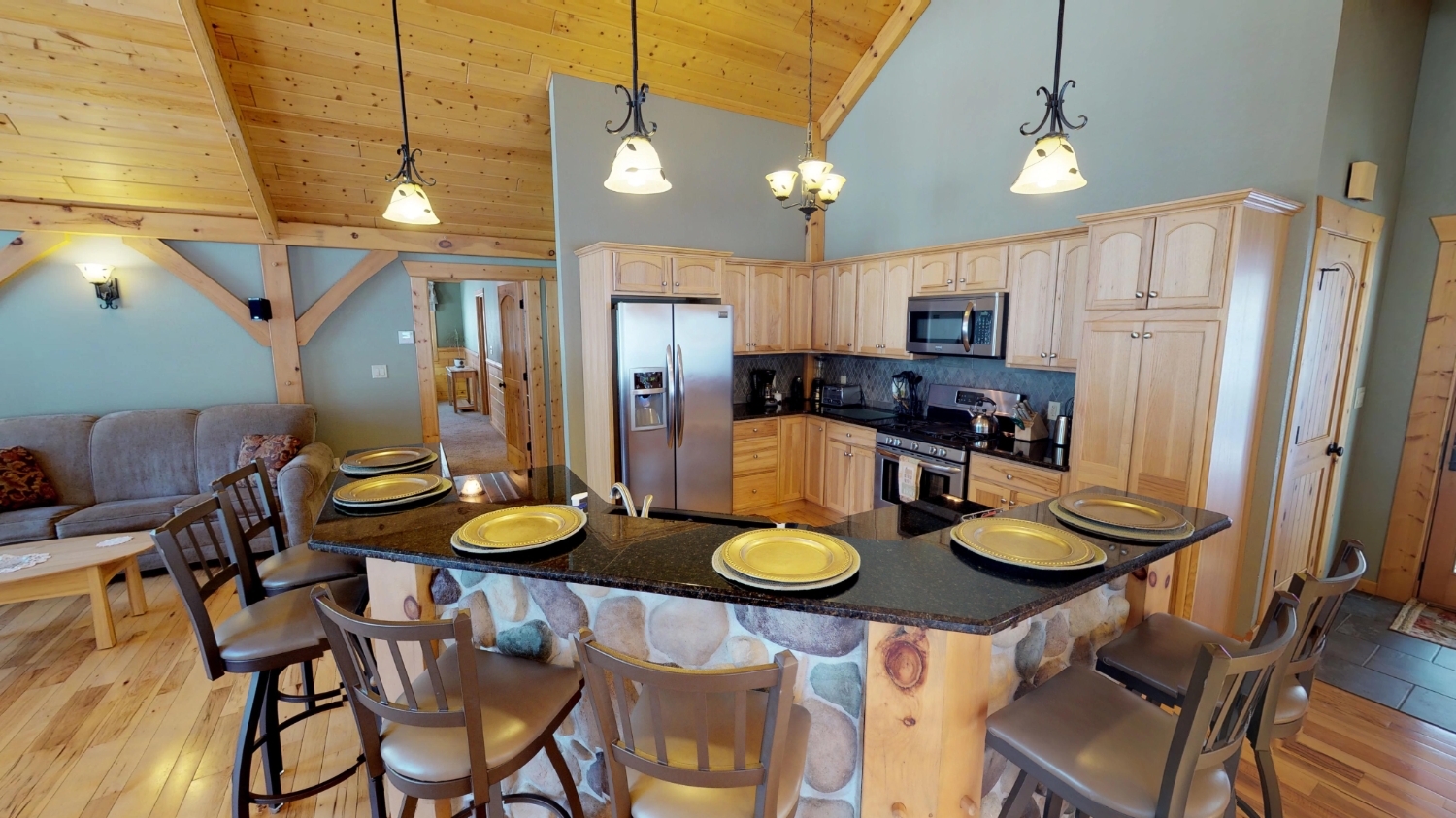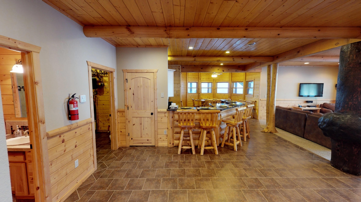 This log Hybrid Timber Frame log home has a lot of open space and yet still has a number of places that you can go to have your own space. It even has a mini loft hideaway. The octagon dining areas offer a breath taking view while pouring daylight into the home. The master suite walk-in closet has an enormous amount of space. It's a room of its own. This home is ideal for having guests and hosting large family events.