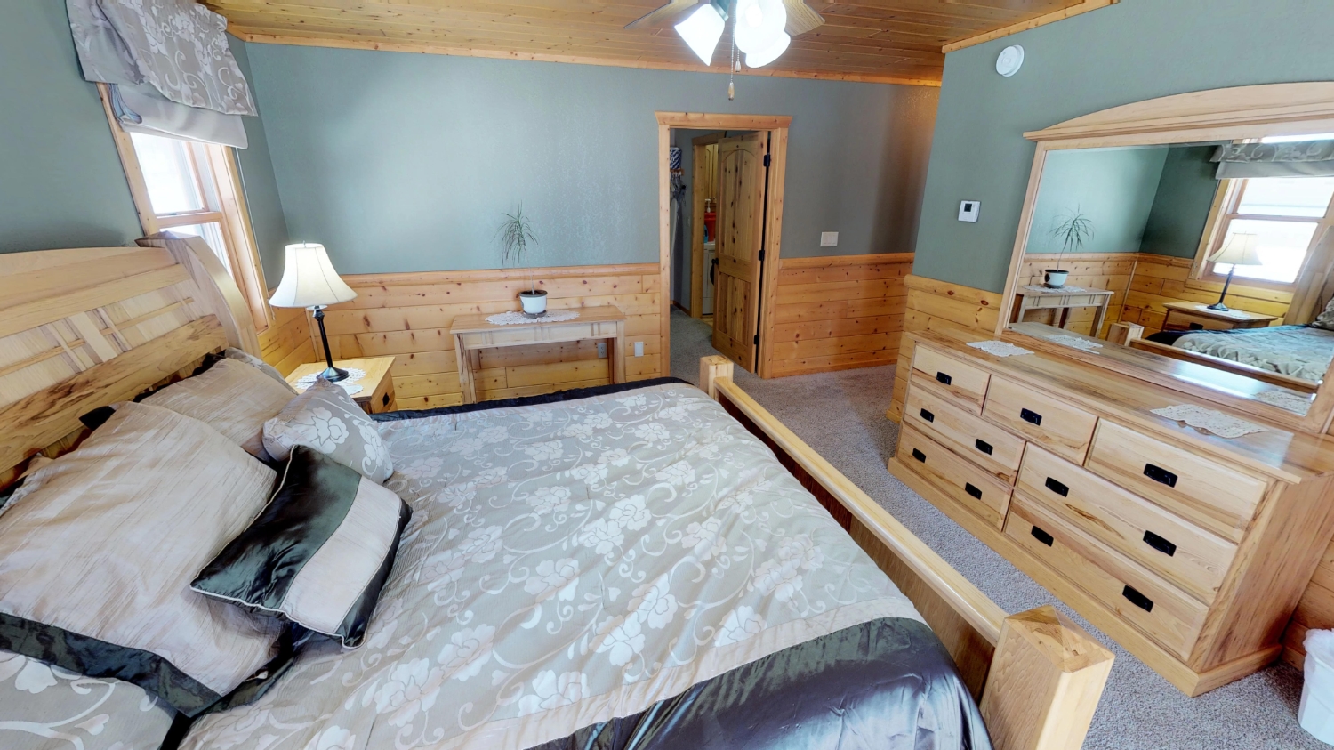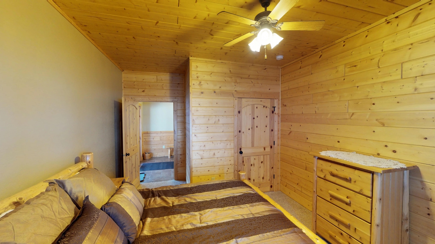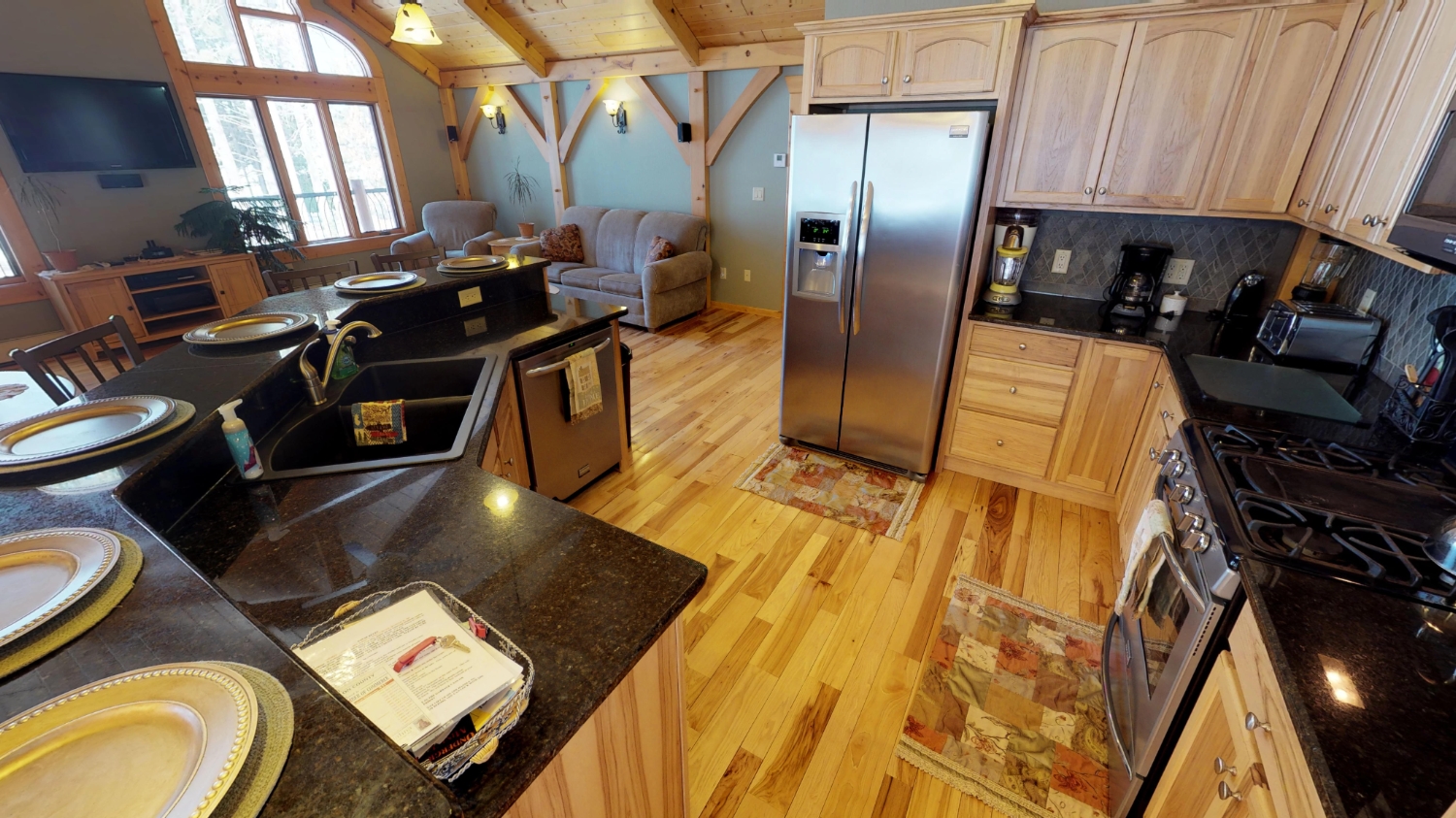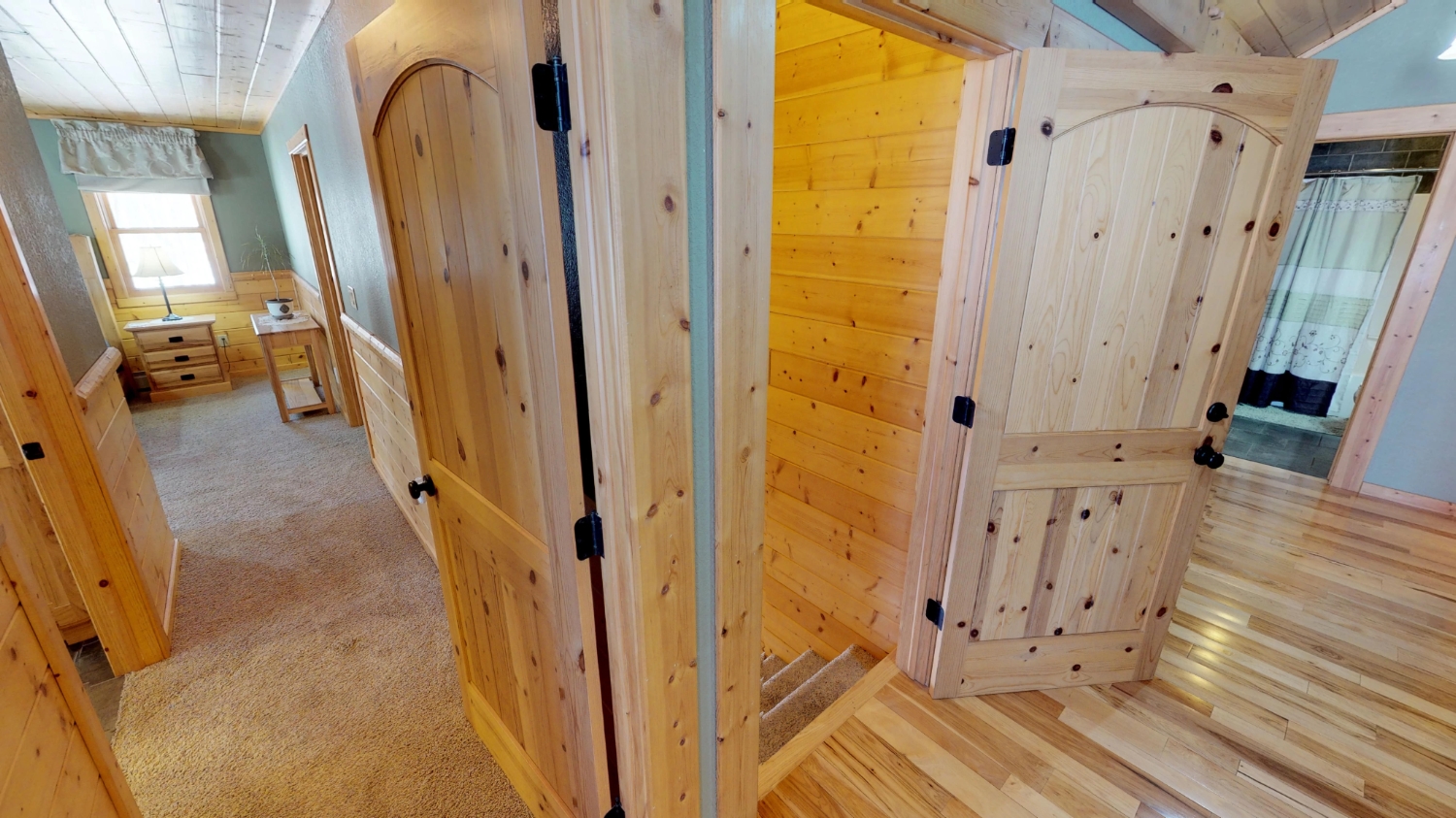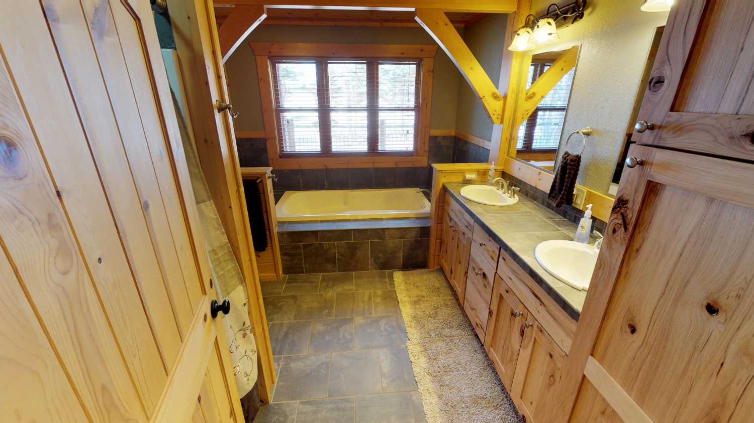 This log Hybrid Timber Frame log home has a lot of open space and yet still has a number of places that you can go to have your own space. It even has a mini loft hideaway. The octagon dining areas offer a breath taking view while pouring daylight into the home. The master suite walk-in closet has an enormous amount of space. It's a room of its own. This home is ideal for having guests and hosting large family events.