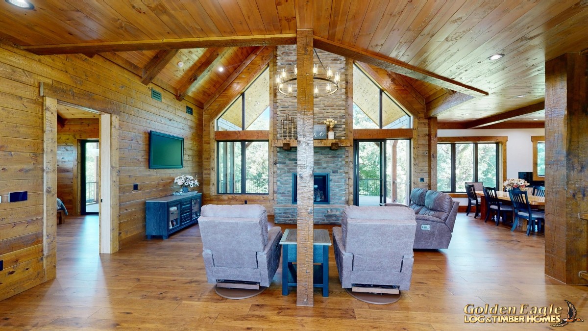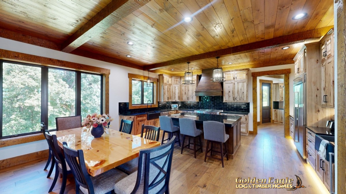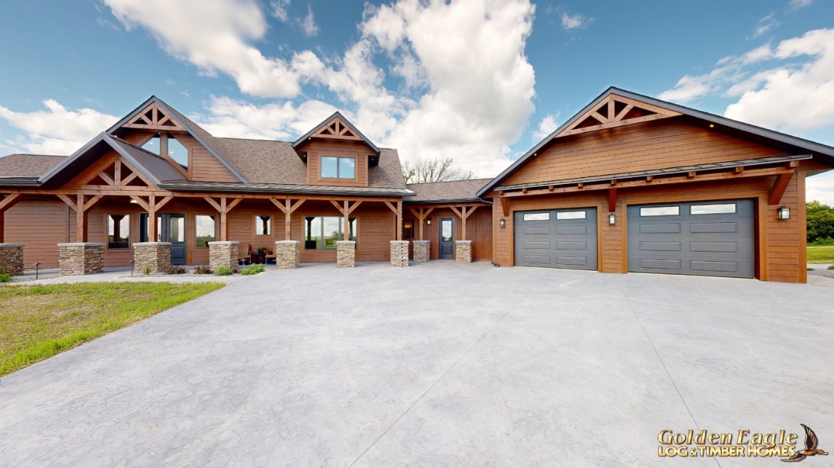 The Farmhouse Homestead floorplan blends rustic charm with modern functionality, making it an ideal retreat whether nestled in rolling farmland or perched beside a tranquil lake. Its open-concept design centers around a spacious great room with vaulted ceilings and natural views, while a covered porch invites outdoor living and relaxation. The kitchen features a large farmhouse island and walk-in pantry, perfect for hosting gatherings or preparing homegrown meals. With a primary suite that opens to a private deck, and additional bedrooms thoughtfully placed for privacy, the layout balances cozy intimacy with expansive comfort.