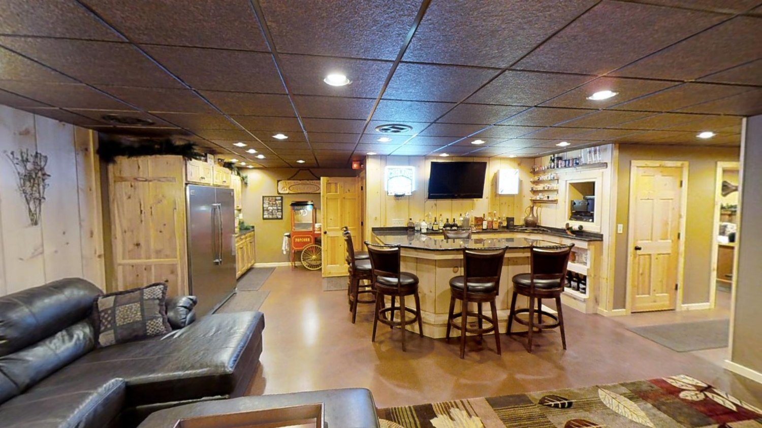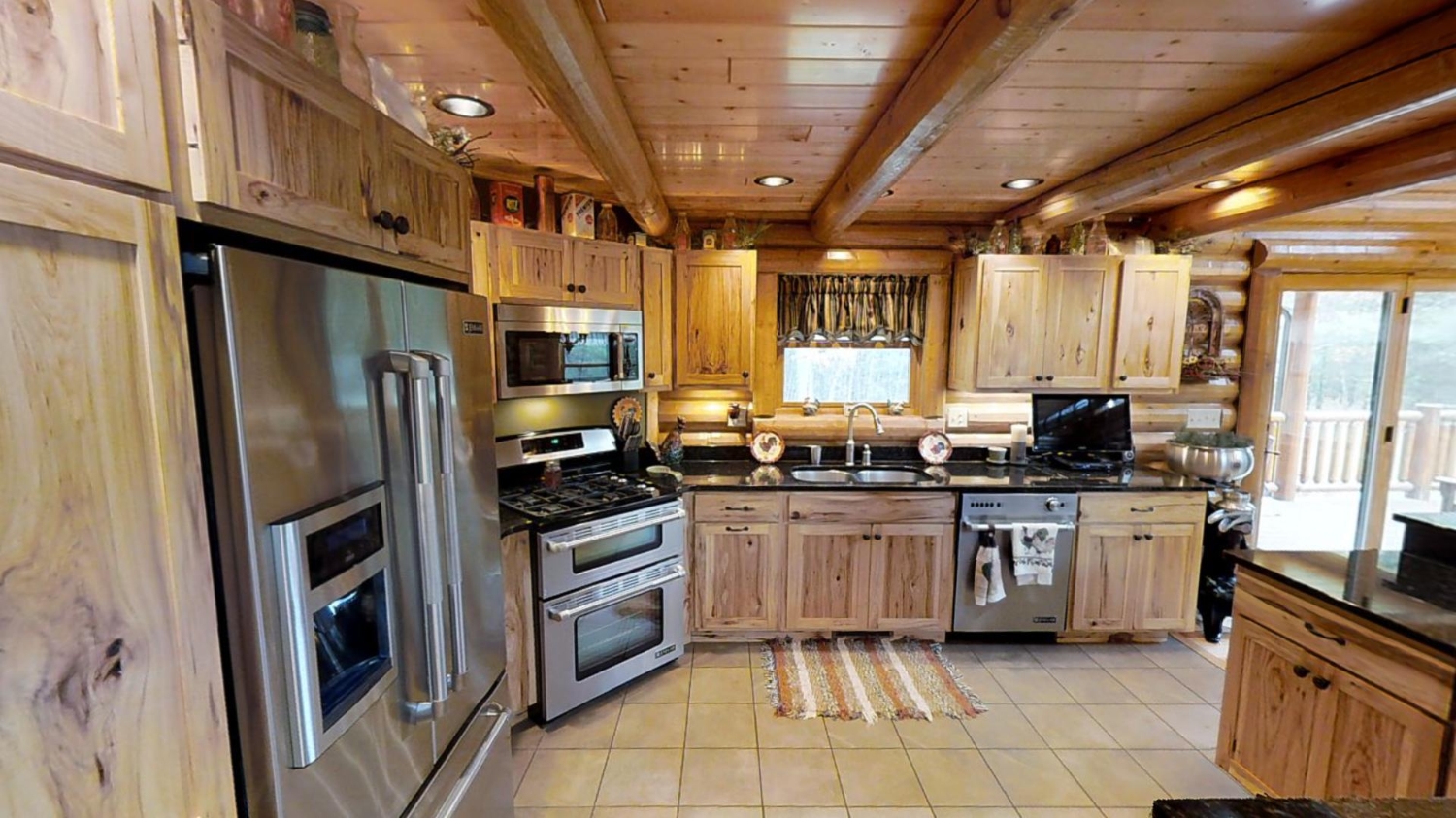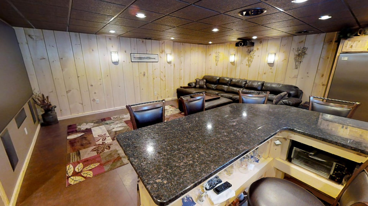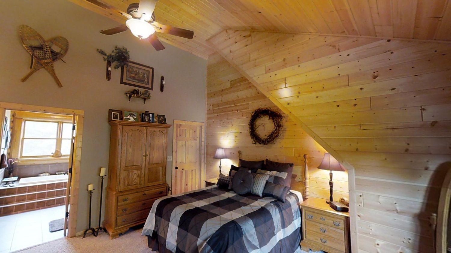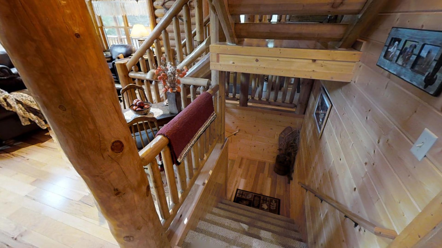 This ranch style home is based on our Lofted Log 1969AL floor plan. This custom version of the Lofted Log 1969AL has a very open and spacious feel. It has high vaulted ceilings in the great room with an overlooking loft area. The home owner's rustic decor preference lends itself well to a log home while using modern appliances and having an impressive "man cave" with a large projection theater screen.