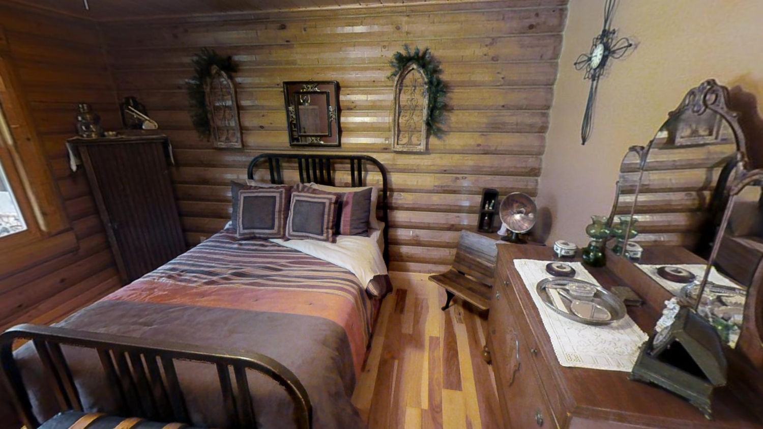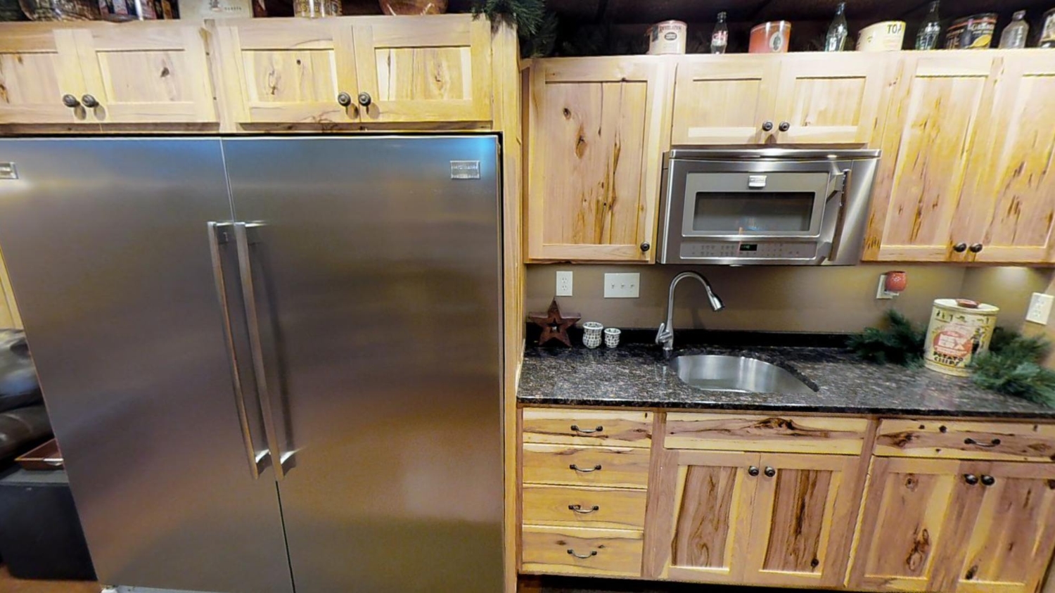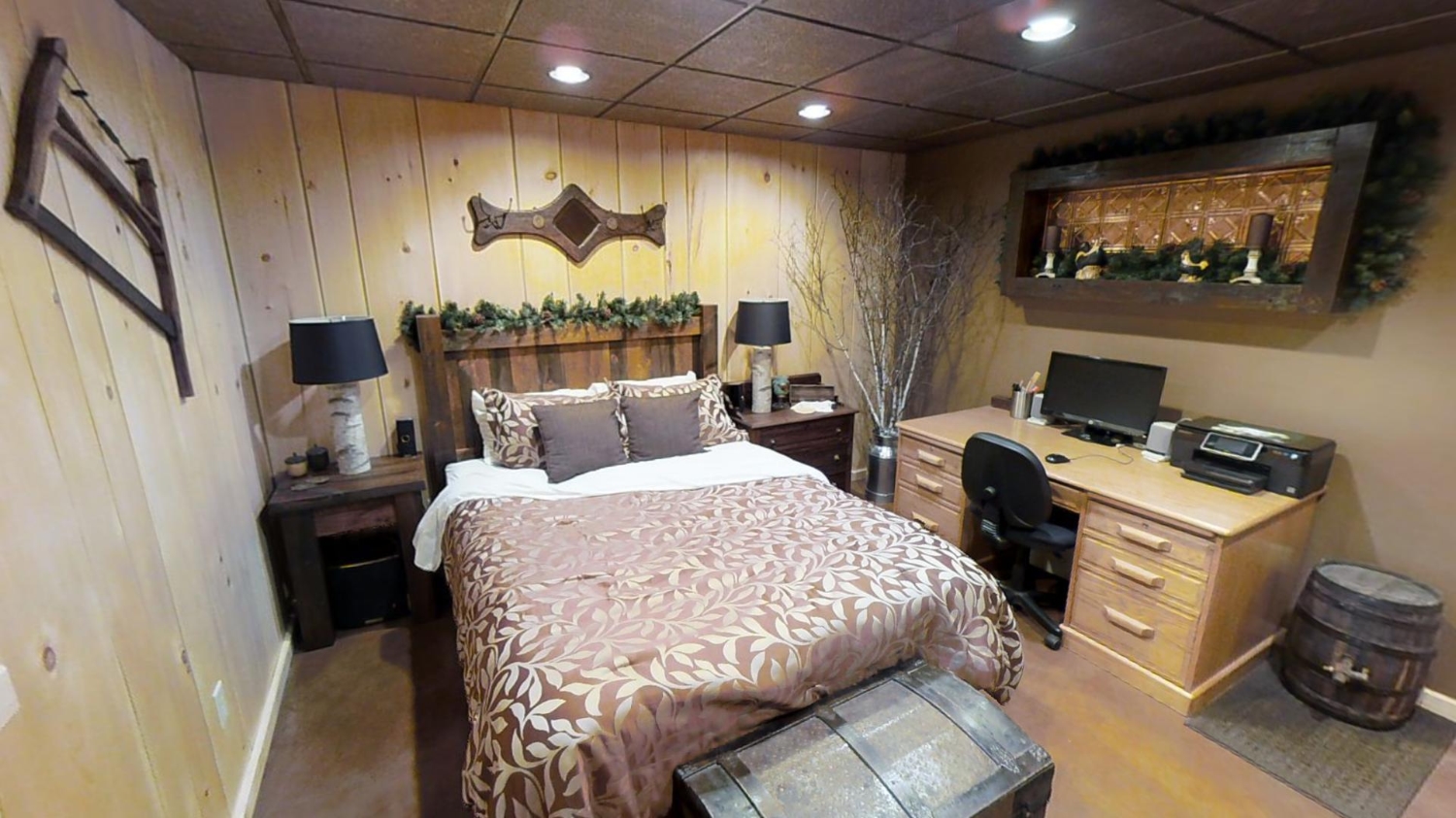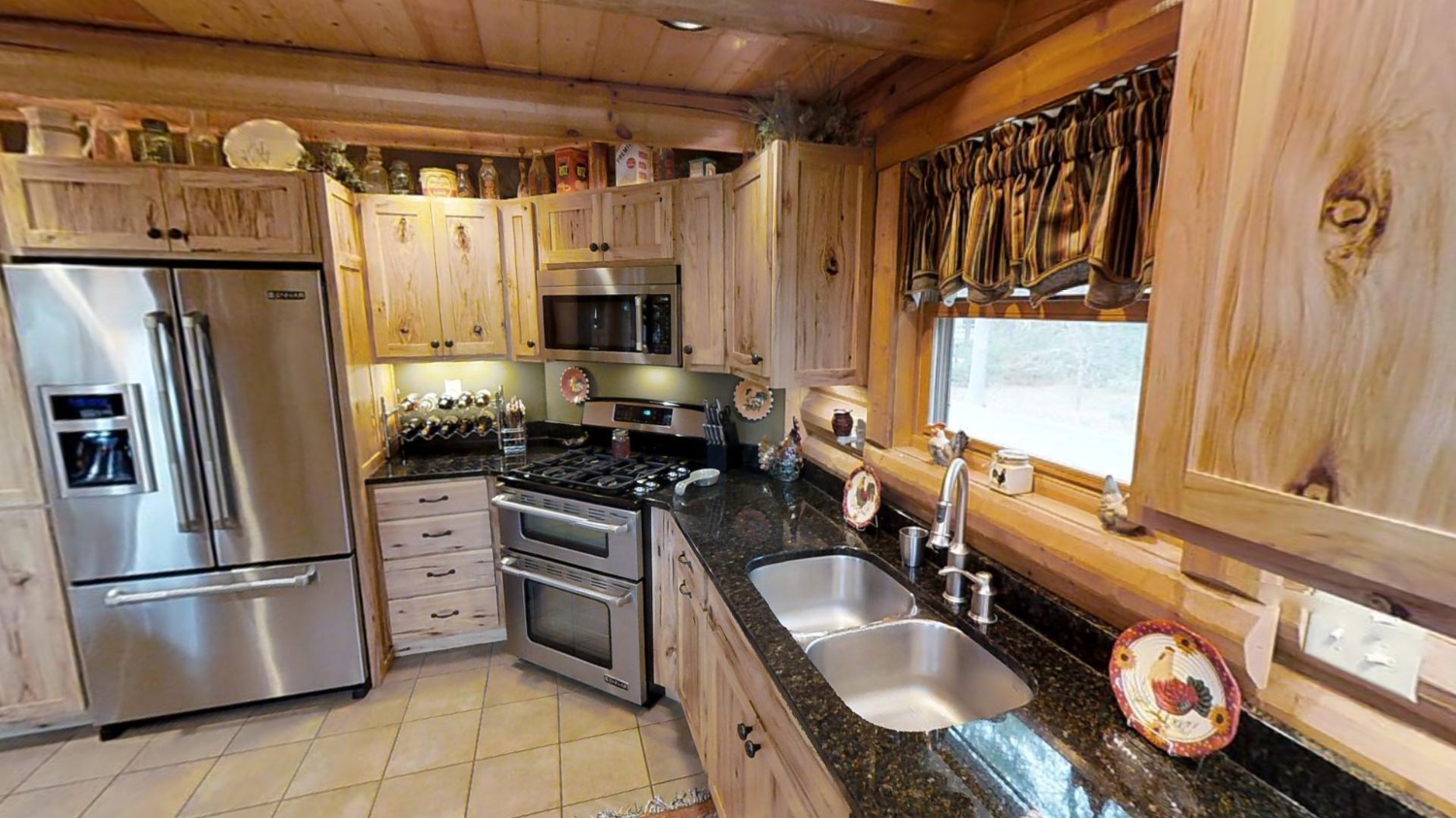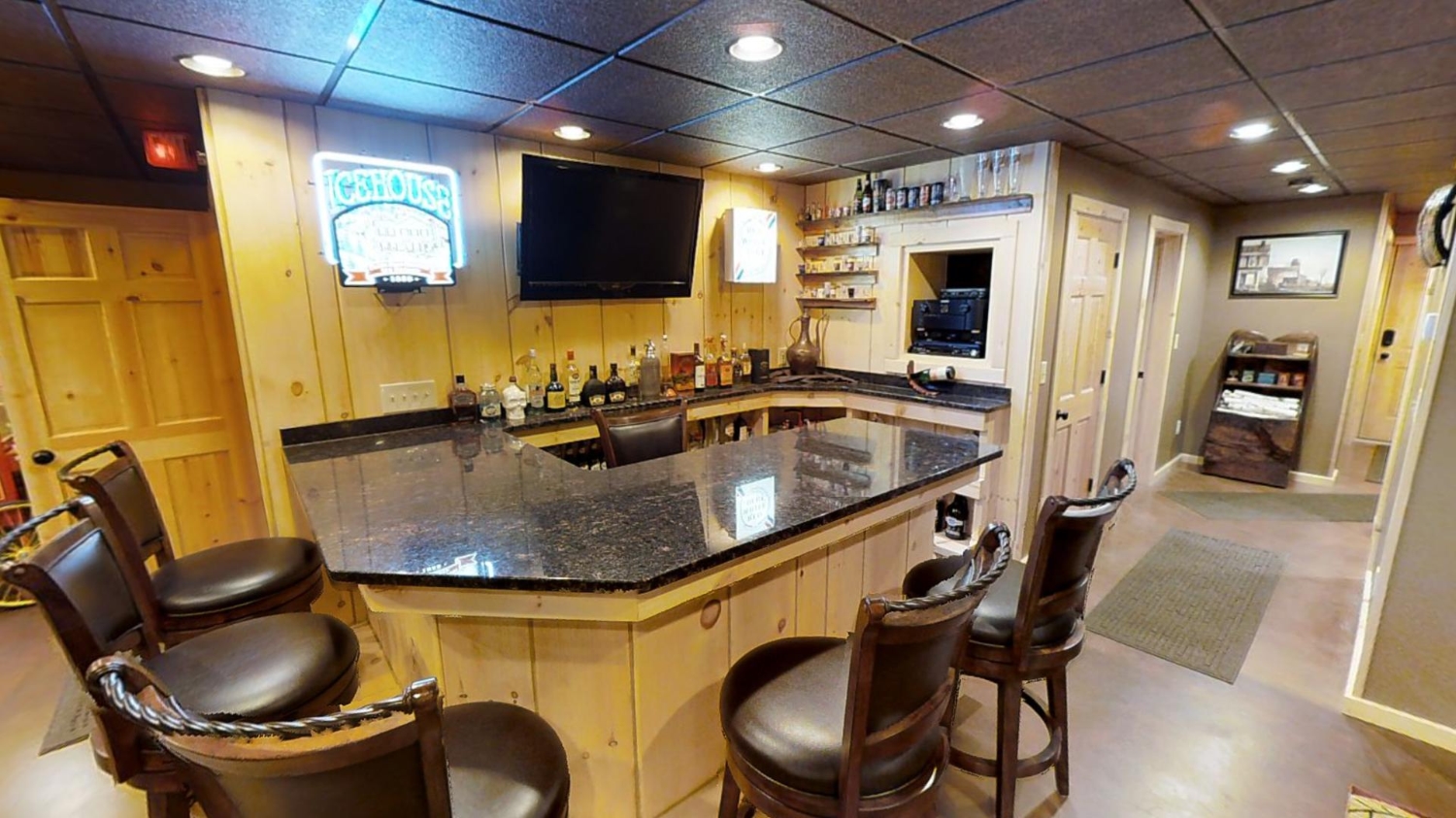This ranch style home is based on our Lofted Log 1969AL floor plan. This custom version of the Lofted Log 1969AL has a very open and spacious feel. It has high vaulted ceilings in the great room with an overlooking loft area. The home owner's rustic decor preference lends itself well to a log home while using modern appliances and having an impressive "man cave" with a large projection theater screen.