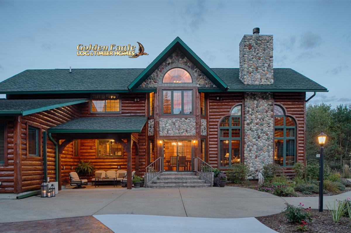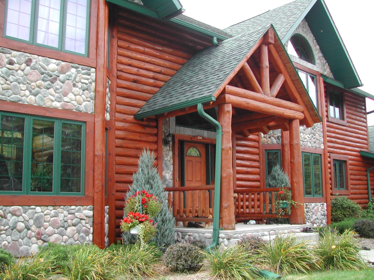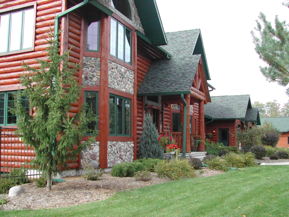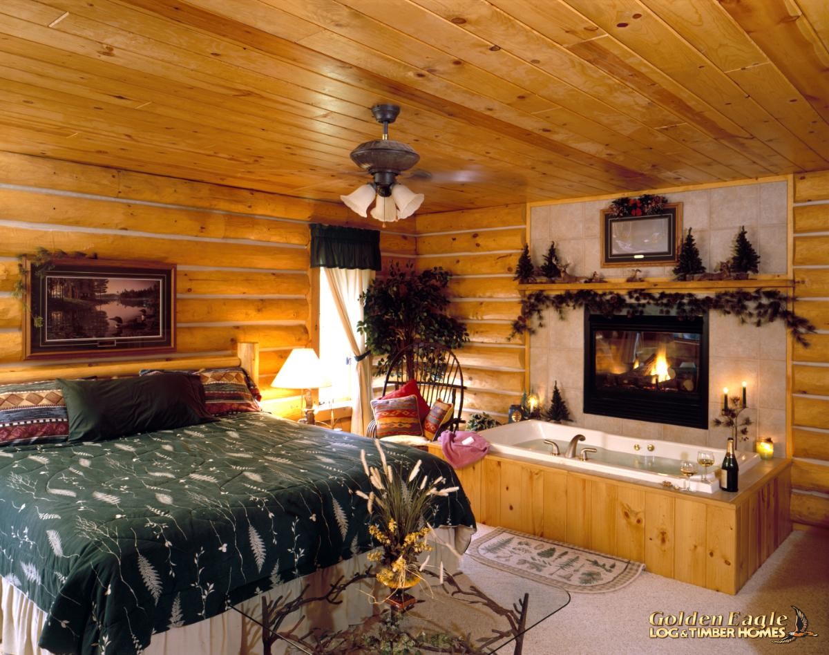 Christmas Tree & Fireplace in a Log Home Livingroom