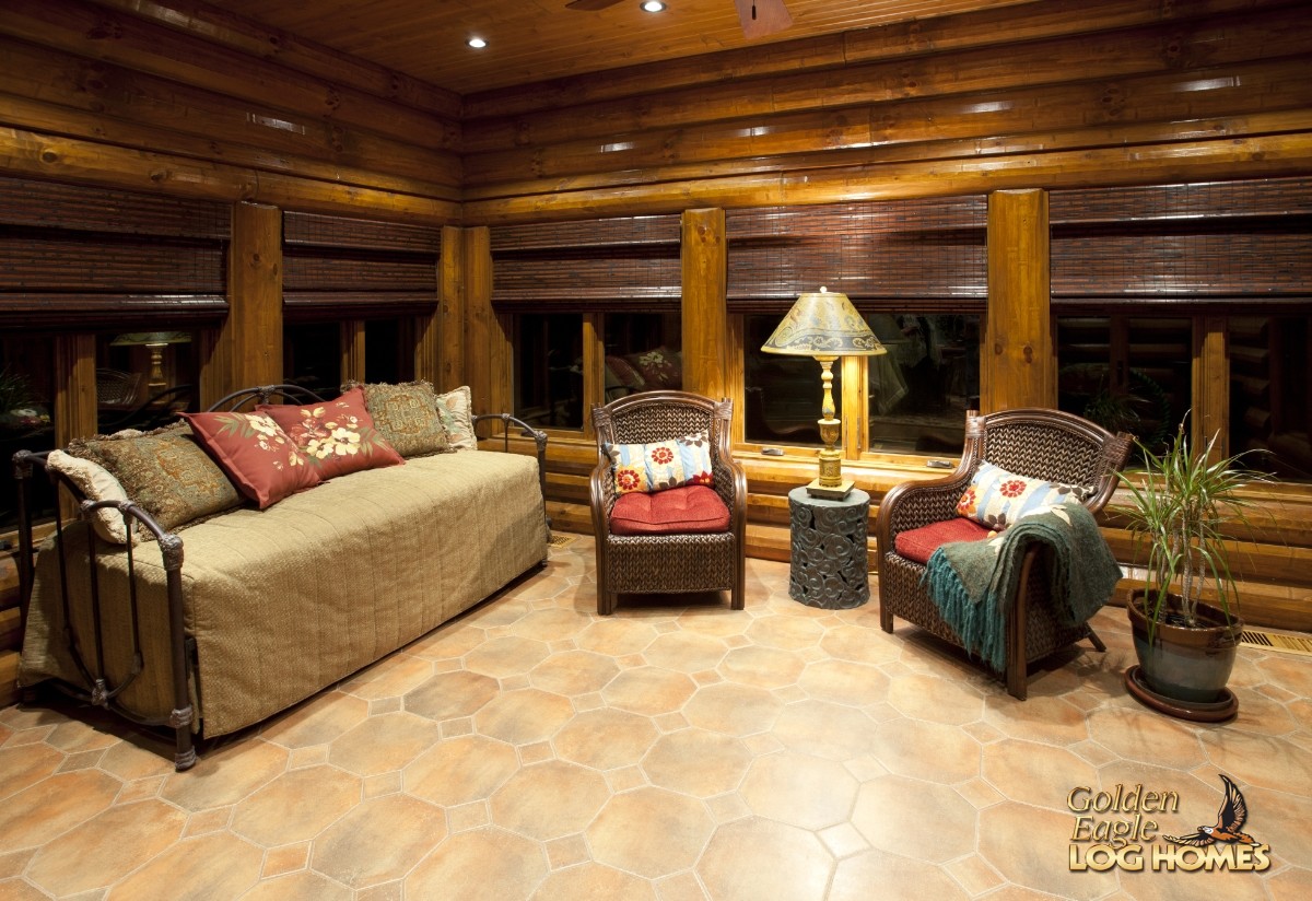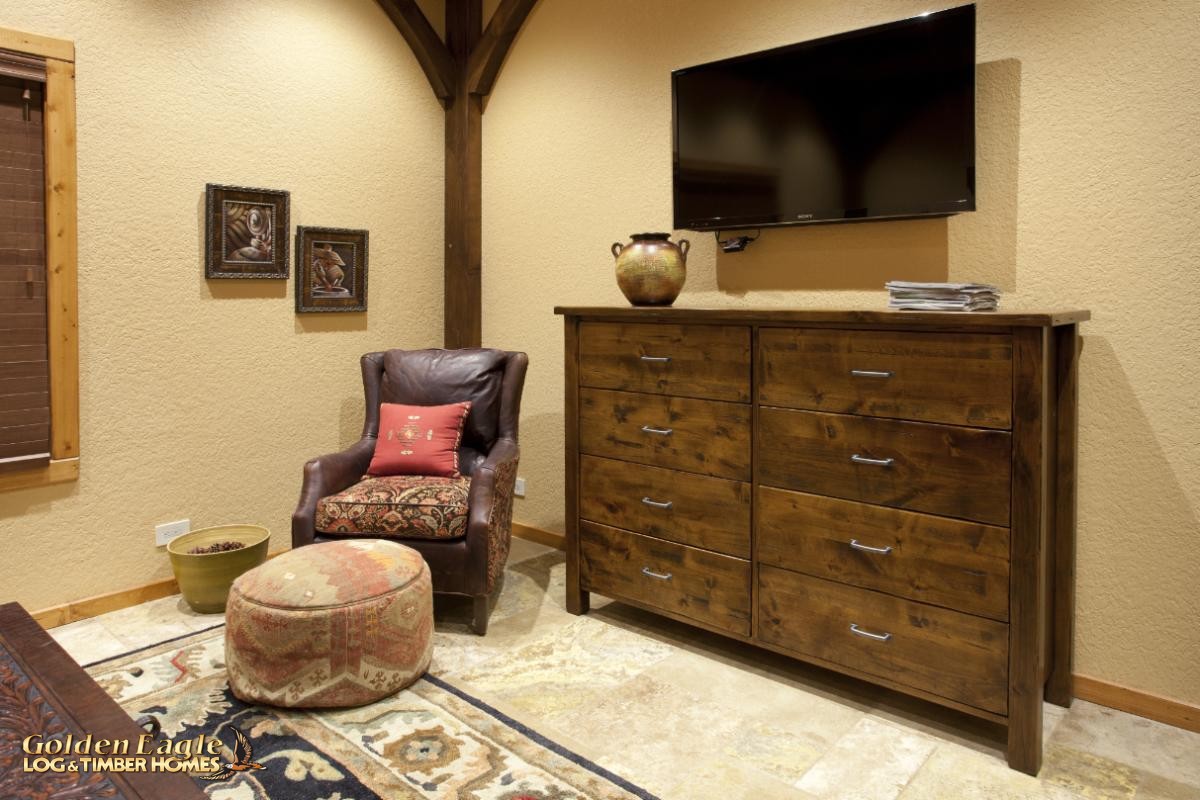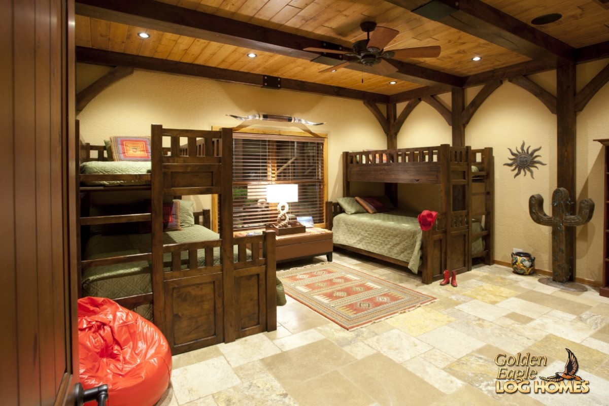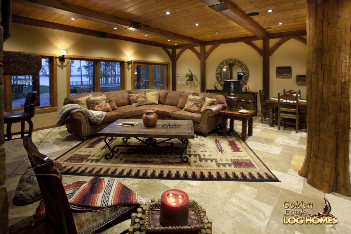 The Texas Timber 3361AL Lofted model combines elements of both square timbers and round log walls, creating interest and appeal with just the right amount of drywall, giving the home the flexibility to make color changes in the future.