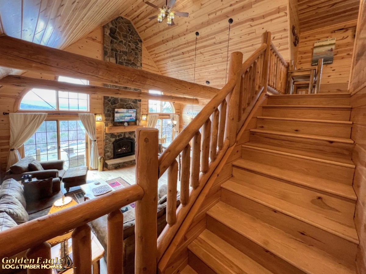 This amazing home is also available as a vacation rental. You can find Eagle Ridge's Log Home social media accounts or book your stay all at www.eagleridgeloghome.com