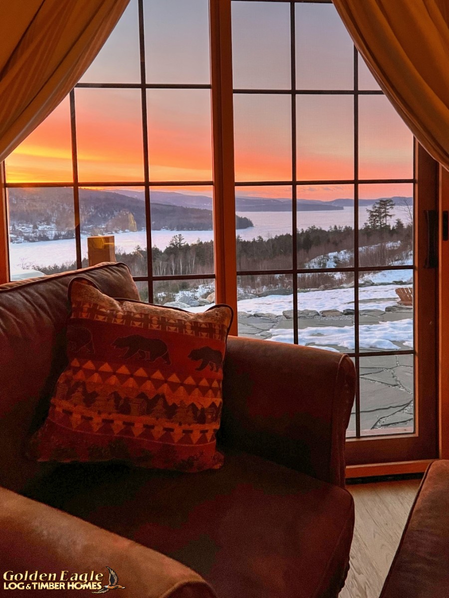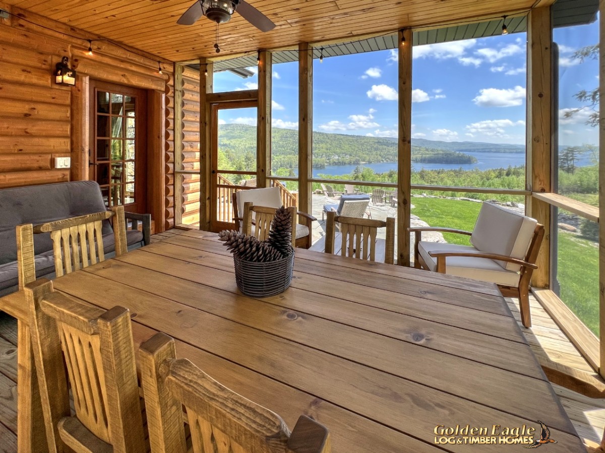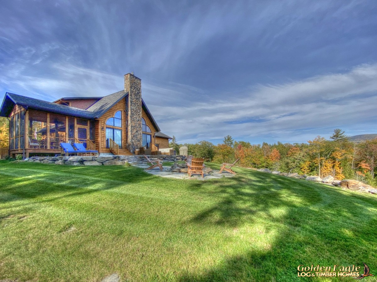The Ultimate Cabin 1569AL is a stunning log home perched high on top of a ridge in Hebron, New Hampshire overlooking pristine Newfound Lake. The home was oriented and designed with a goal of maximizing the spectacular view of the lake and mountains.
