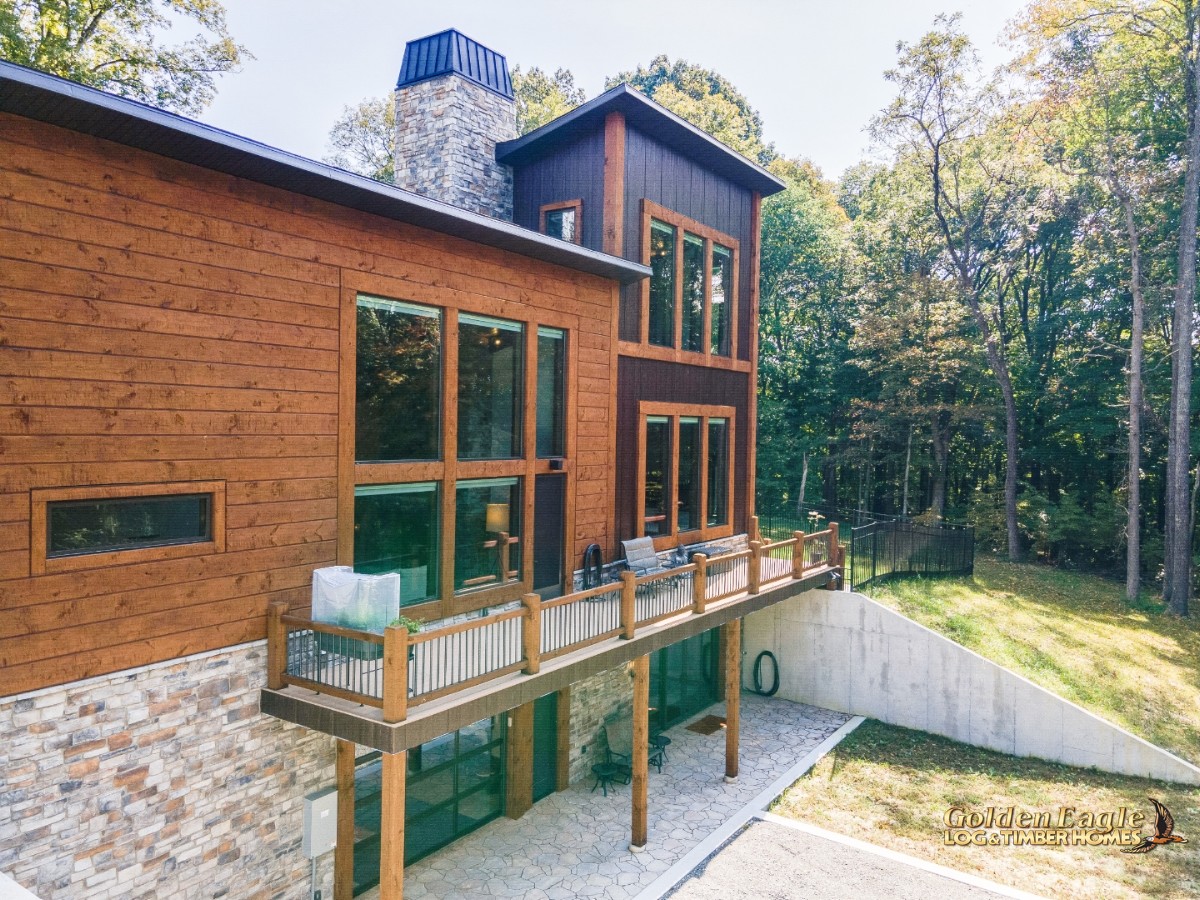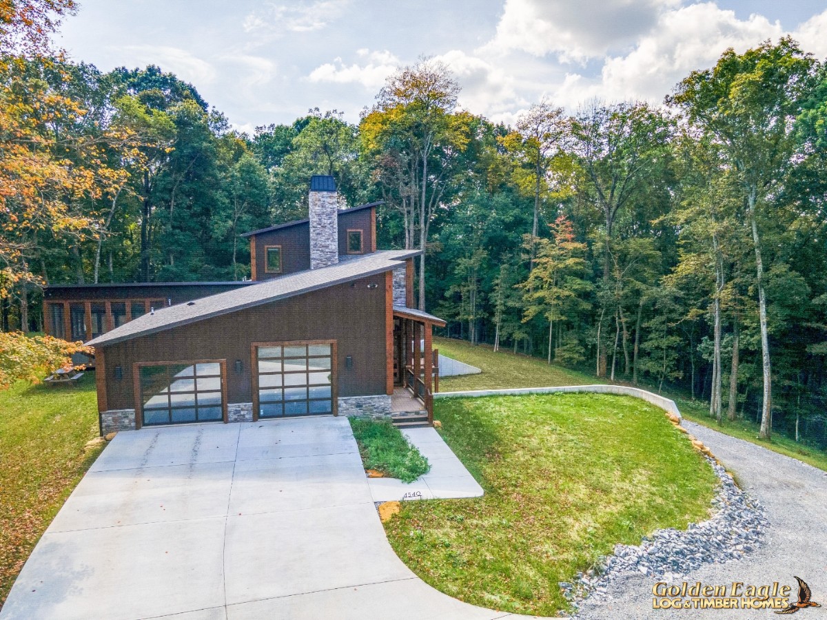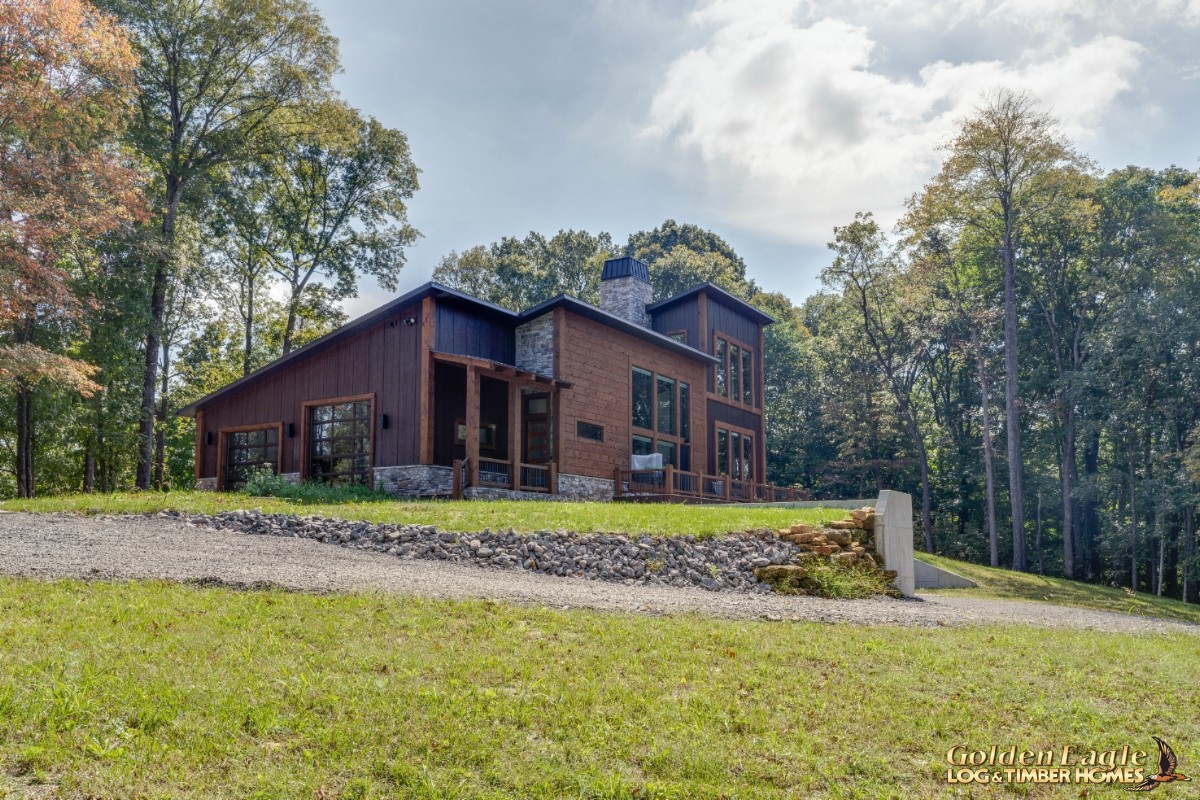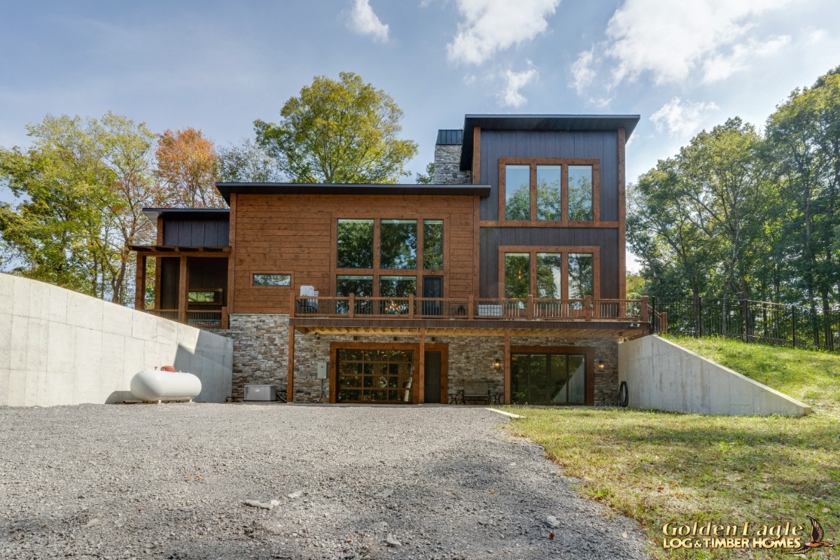 Built in the Tennessee Mountains, this ultra modern is inspired by Timber Frame design. There is tons of light in this home from all the large glass walls.
