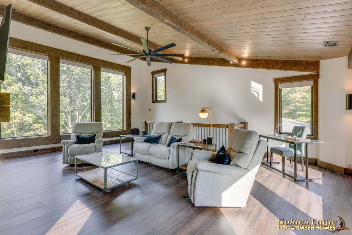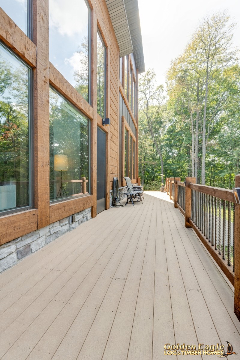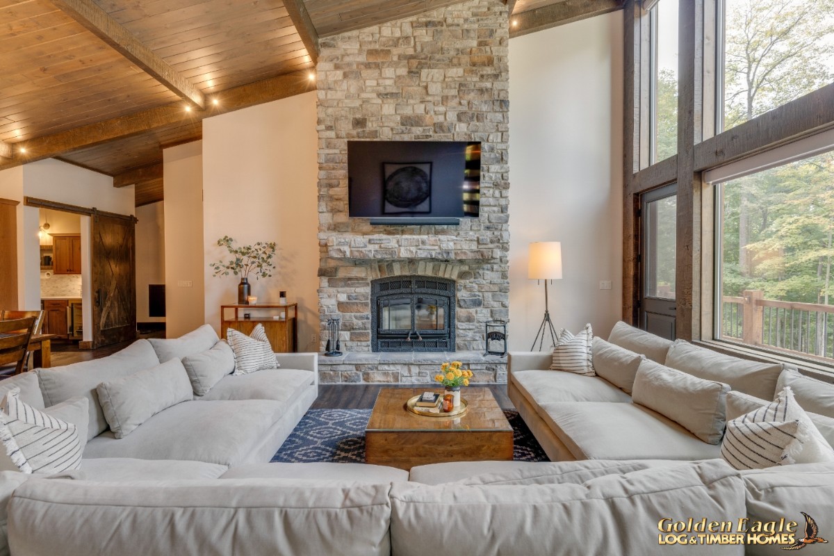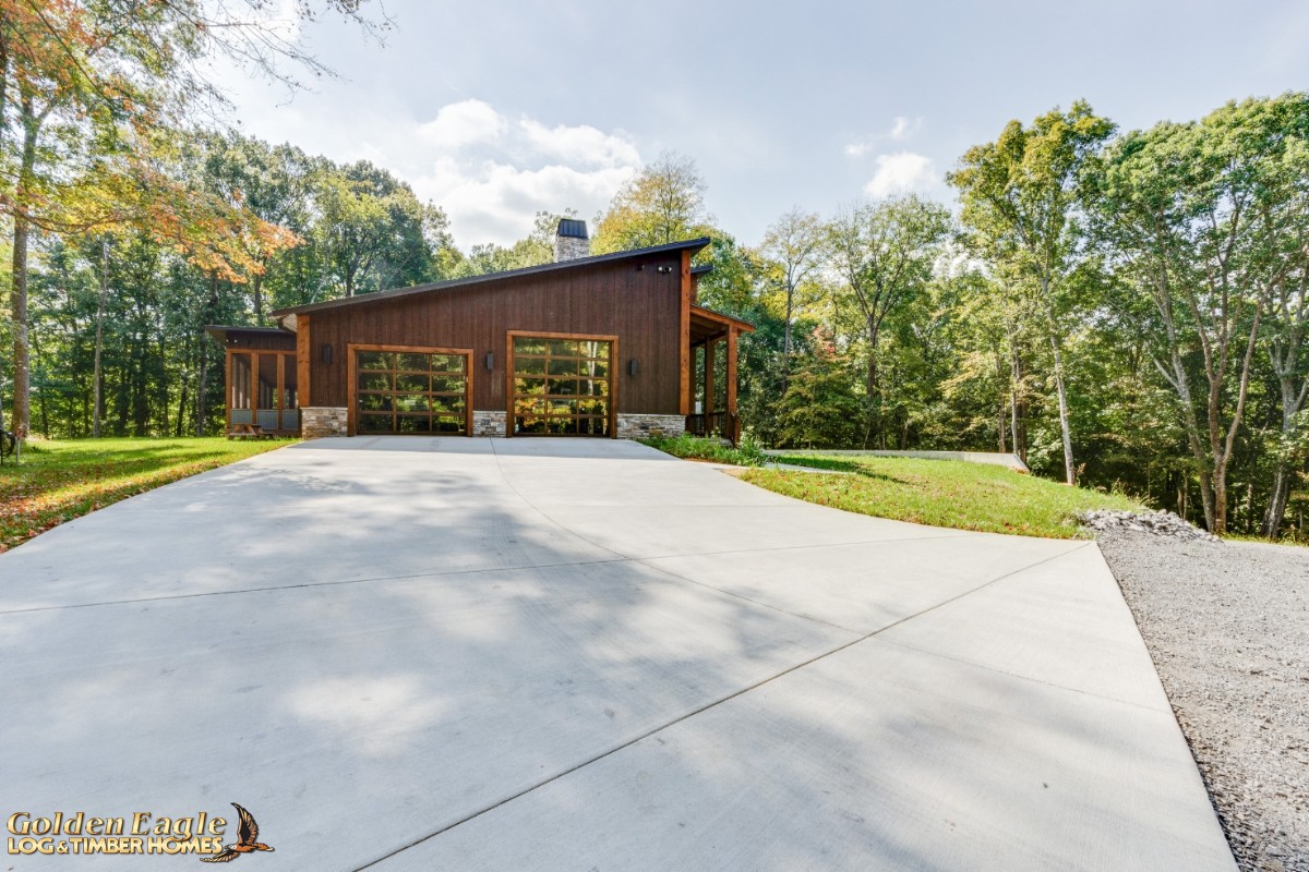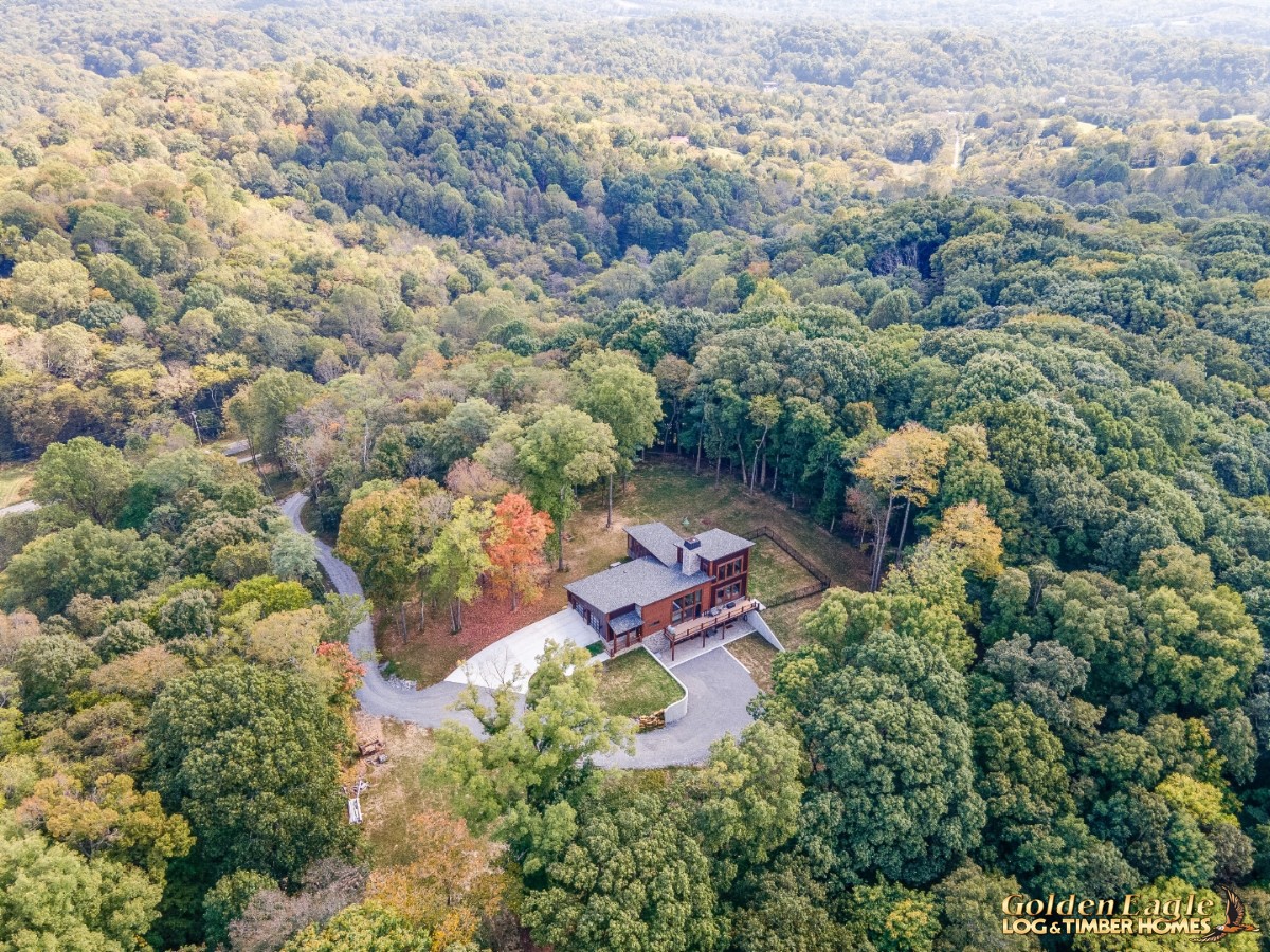 Built in the Tennessee Mountains, this ultra modern is inspired by Timber Frame design. There is tons of light in this home from all the large glass walls.