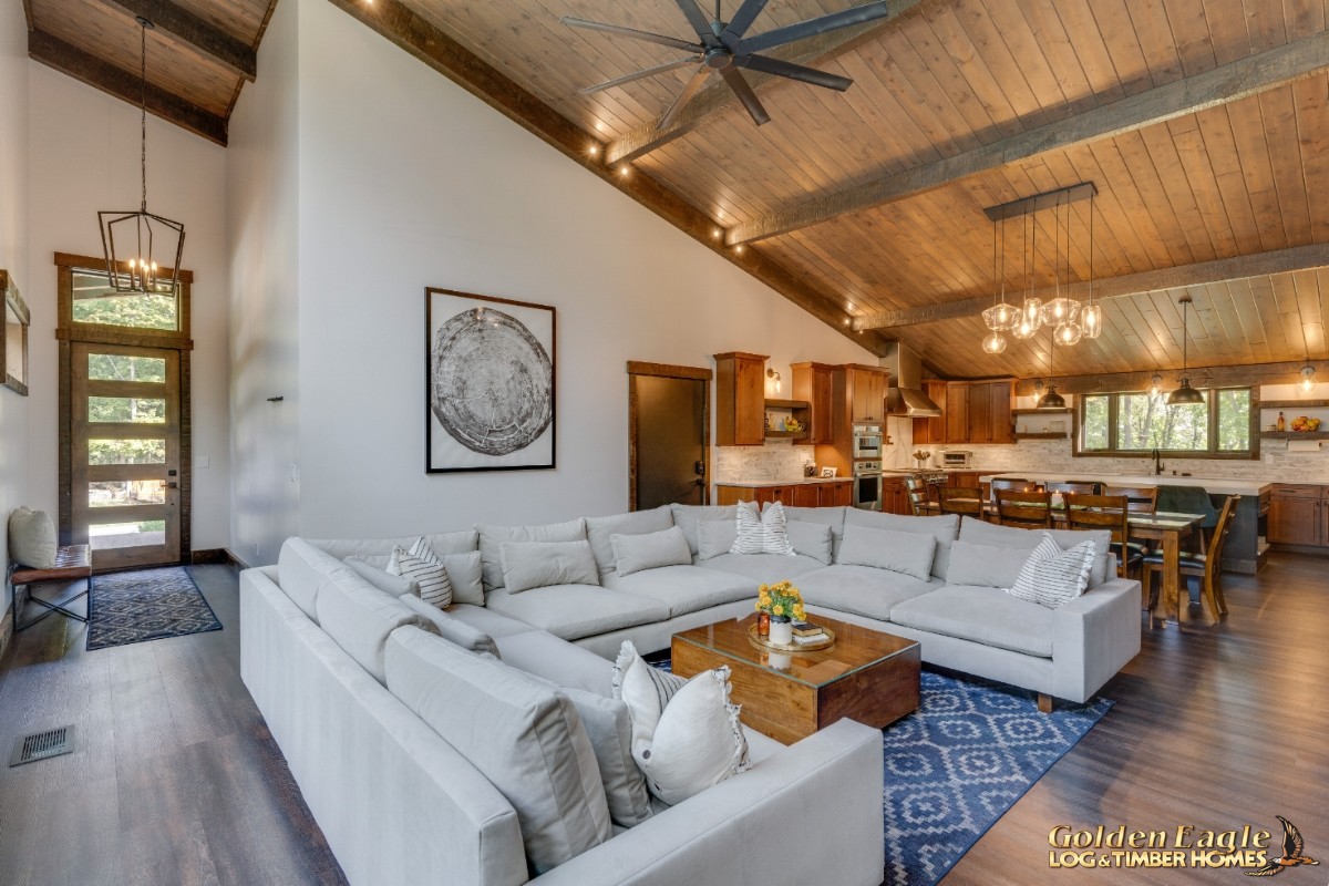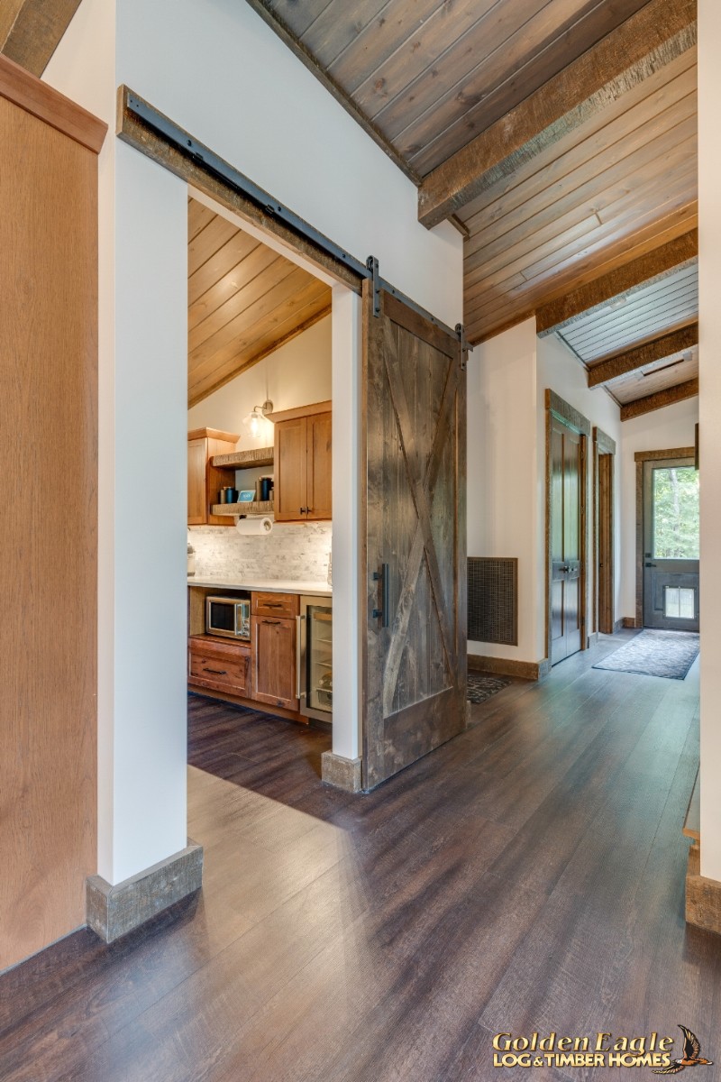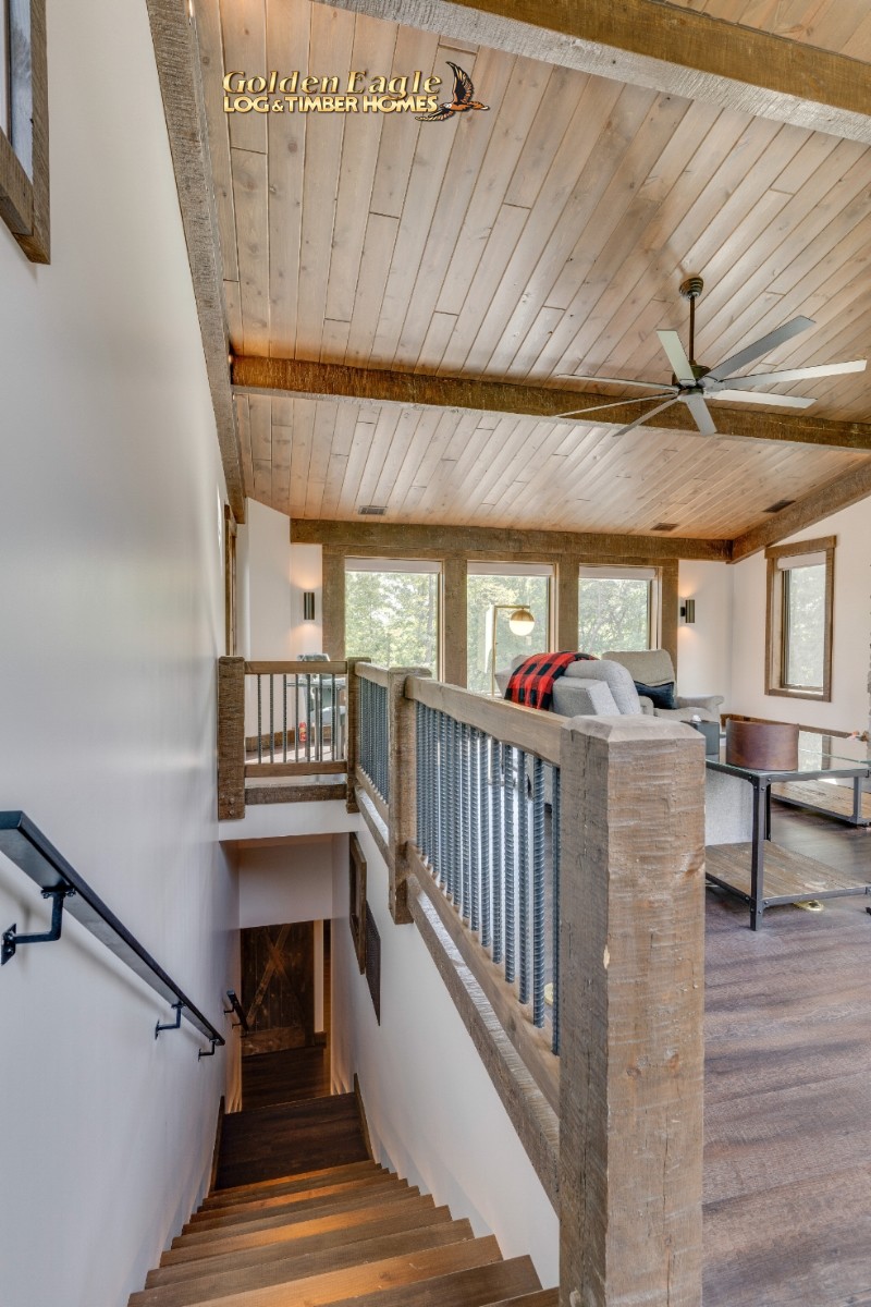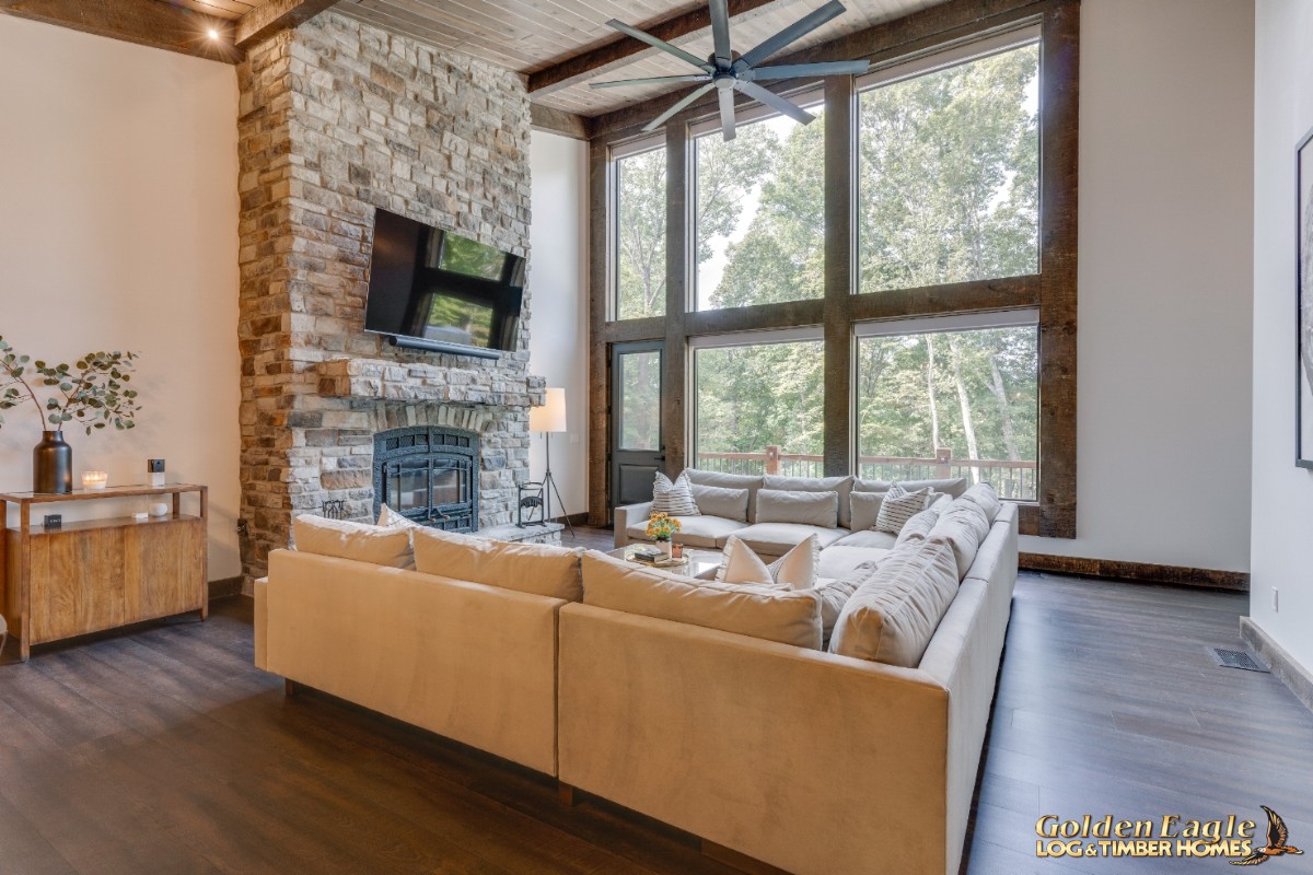 Built in the Tennessee Mountains, this ultra modern is inspired by Timber Frame design. There is tons of light in this home from all the large glass walls.