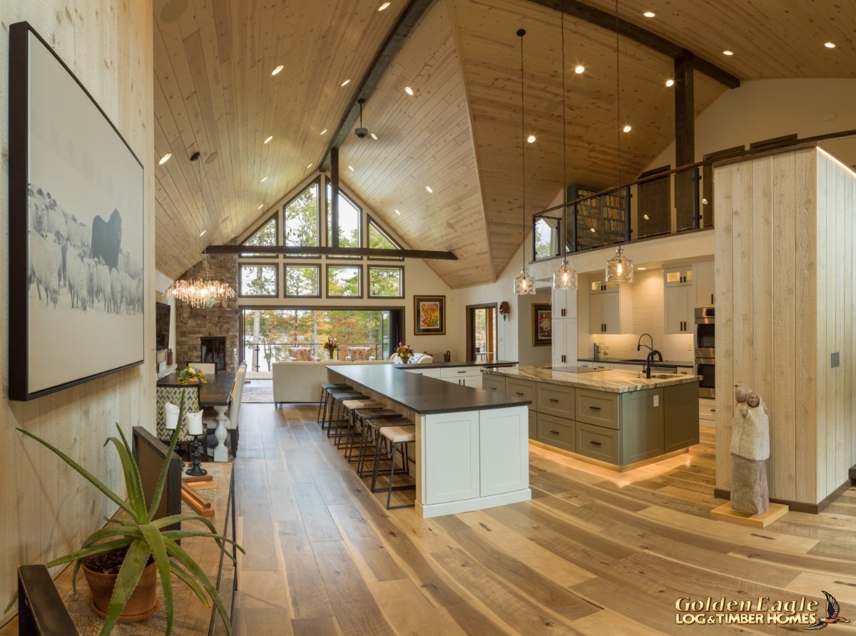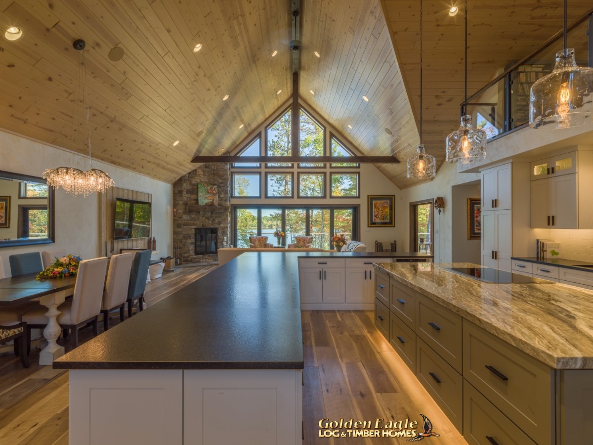 This Modern Lake Home blends ultra-modern European design influence with north woods charm. With a large open concept great room, dining room, and kitchen this home is a ultimate space for entertaining friends and family. The home also features large walk out wall/screen systems that offer unobstructed views of the amazing sunsets over the lake.