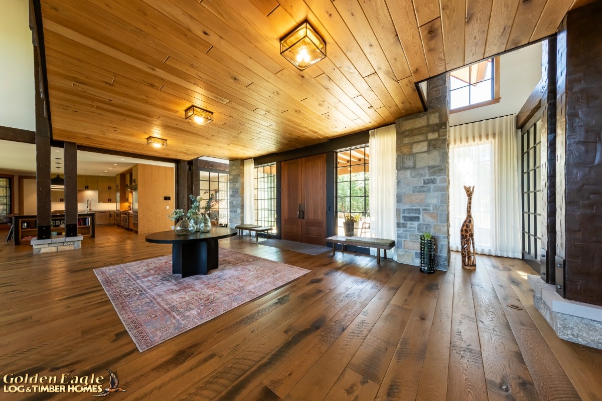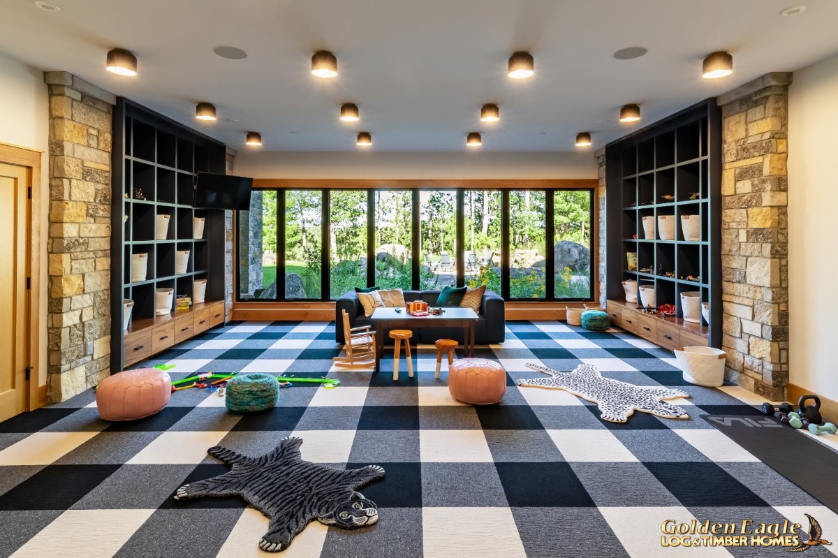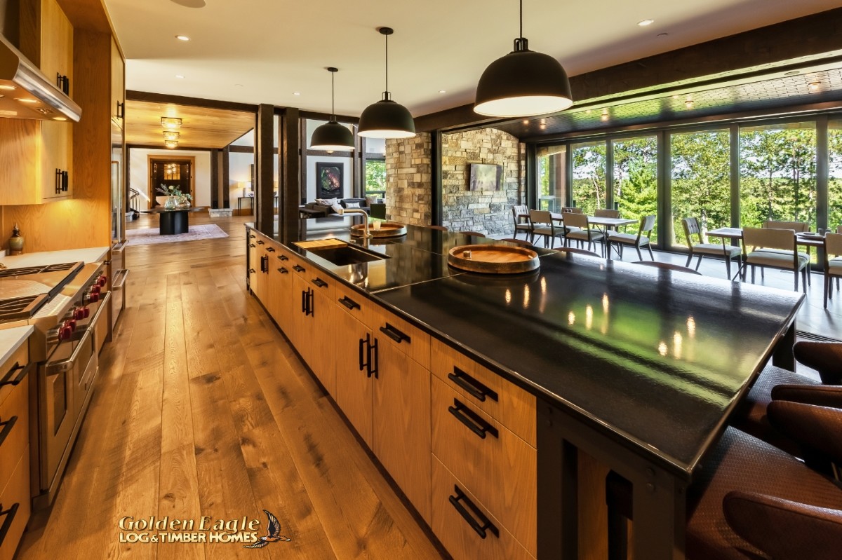 This home has a lot of glass walls letting in a large amount of light and has the perfect amount of rustic elements matched with the best of today's technologies. With 5 bedroom suites with private baths and a bunk bed room, this home if meant for entertaining a lot of guests.