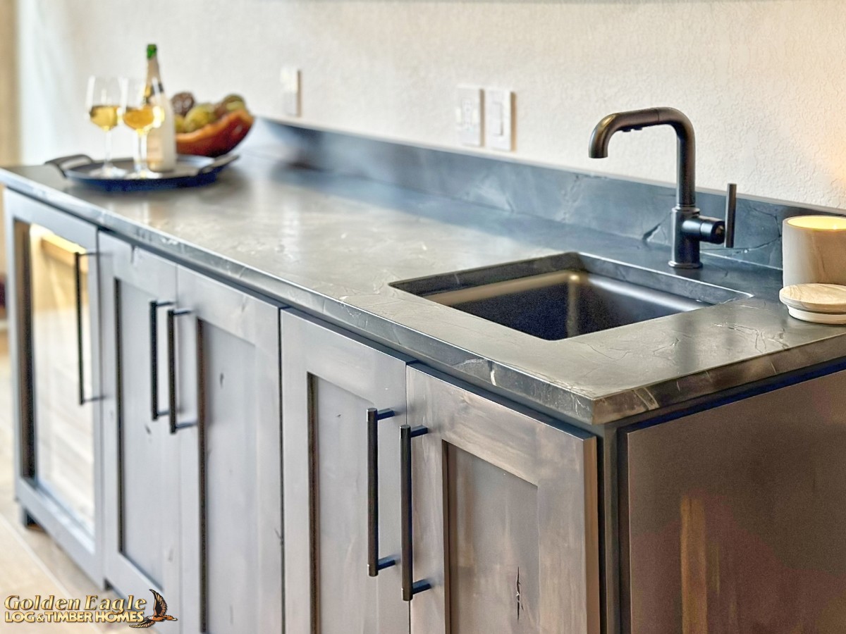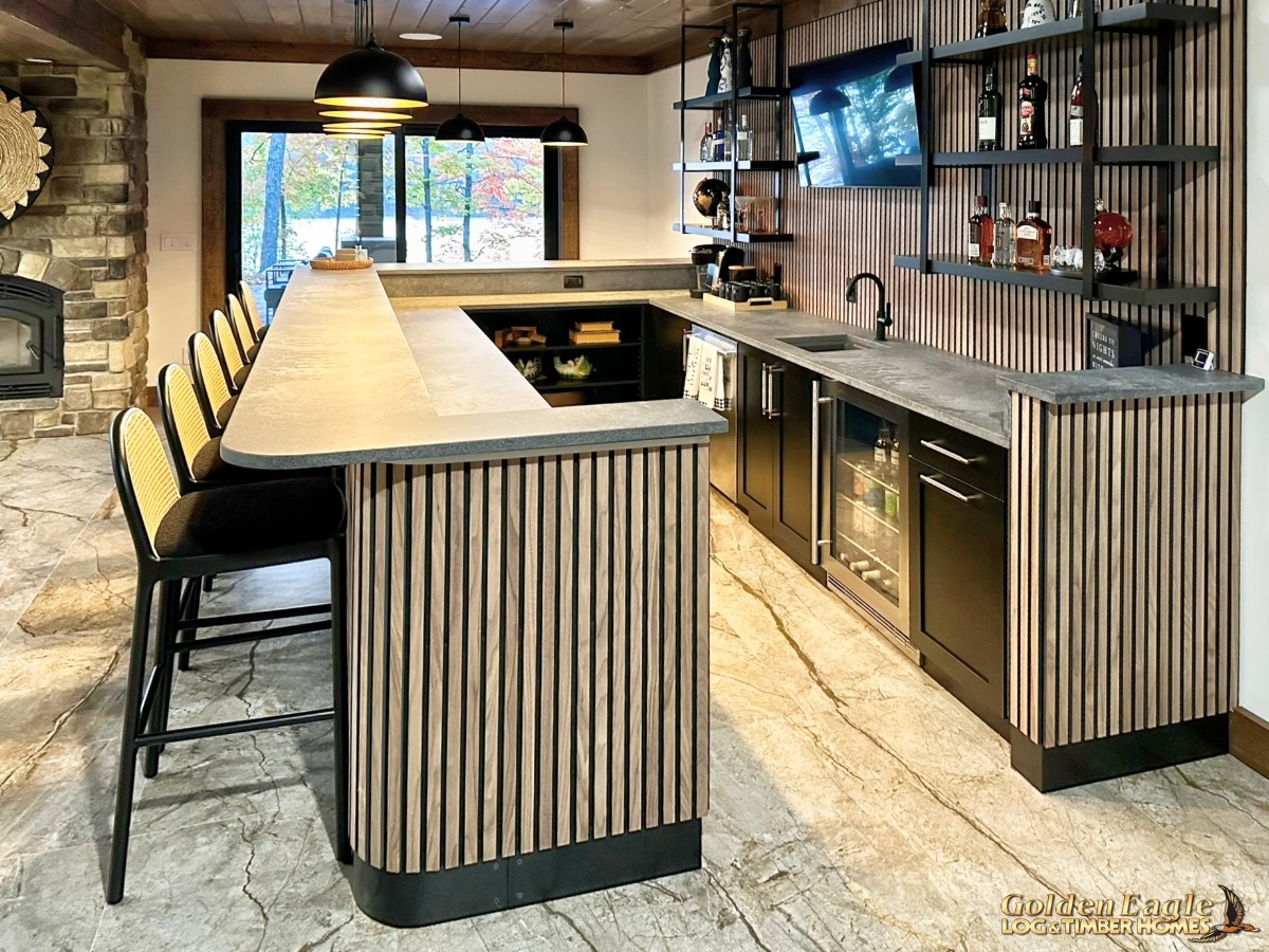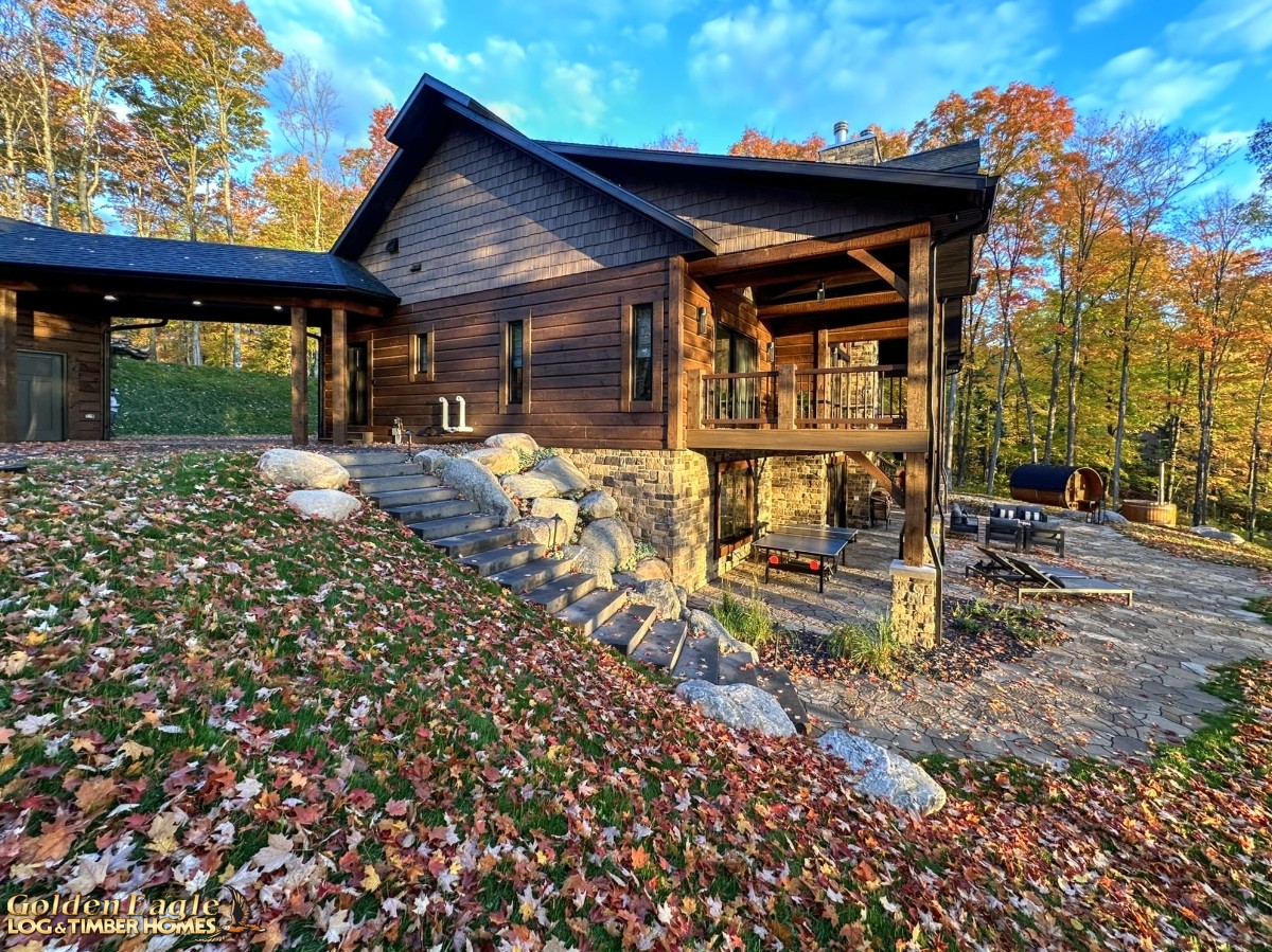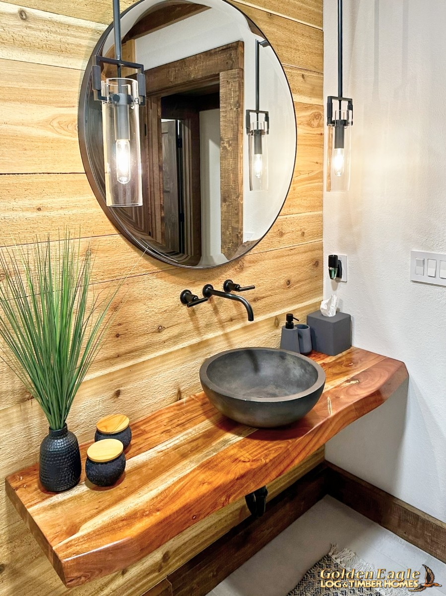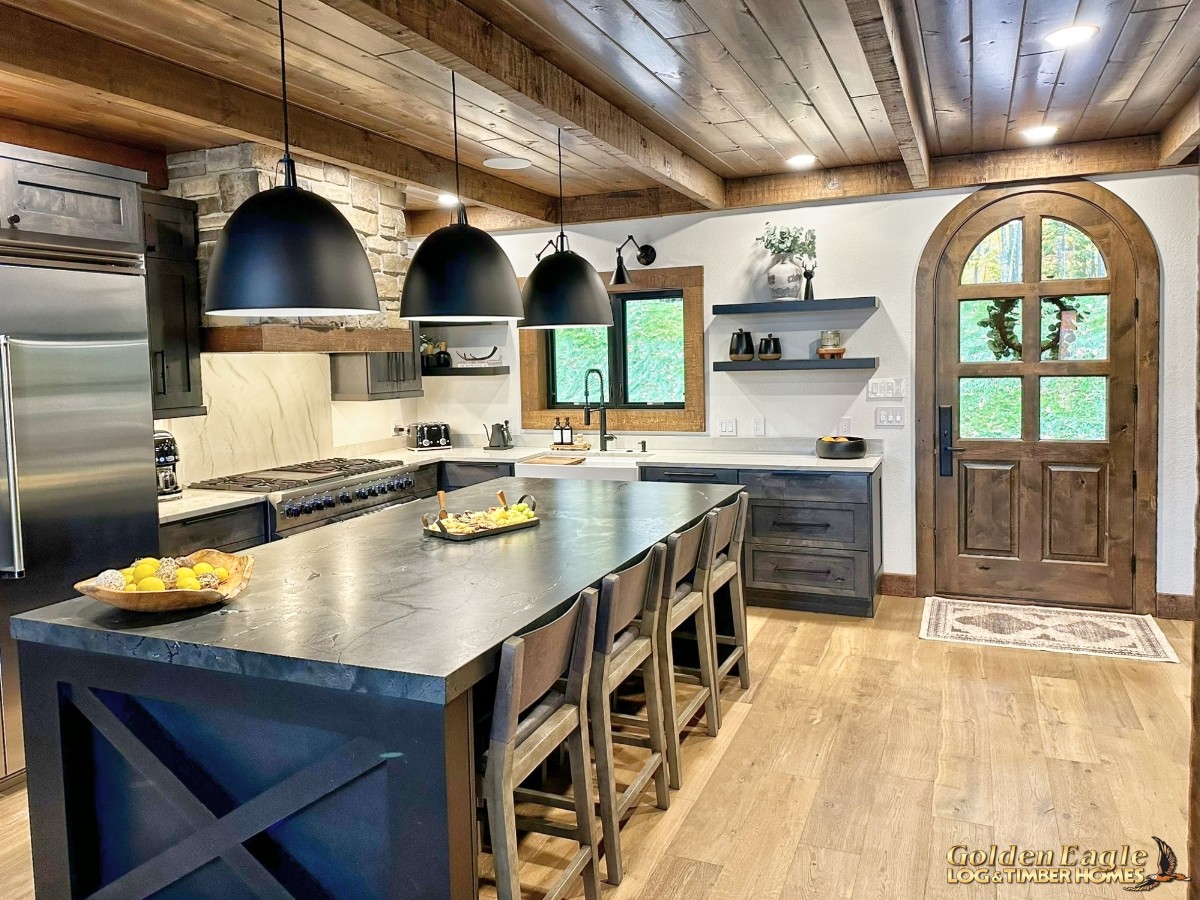 This home is one of our most highly anticipated floor plans this year. It features square timbers and has many modern amenities. There is ample use of rugged log materials as well as traditional drywall. This home has a perfect mix of both rustic and modern.