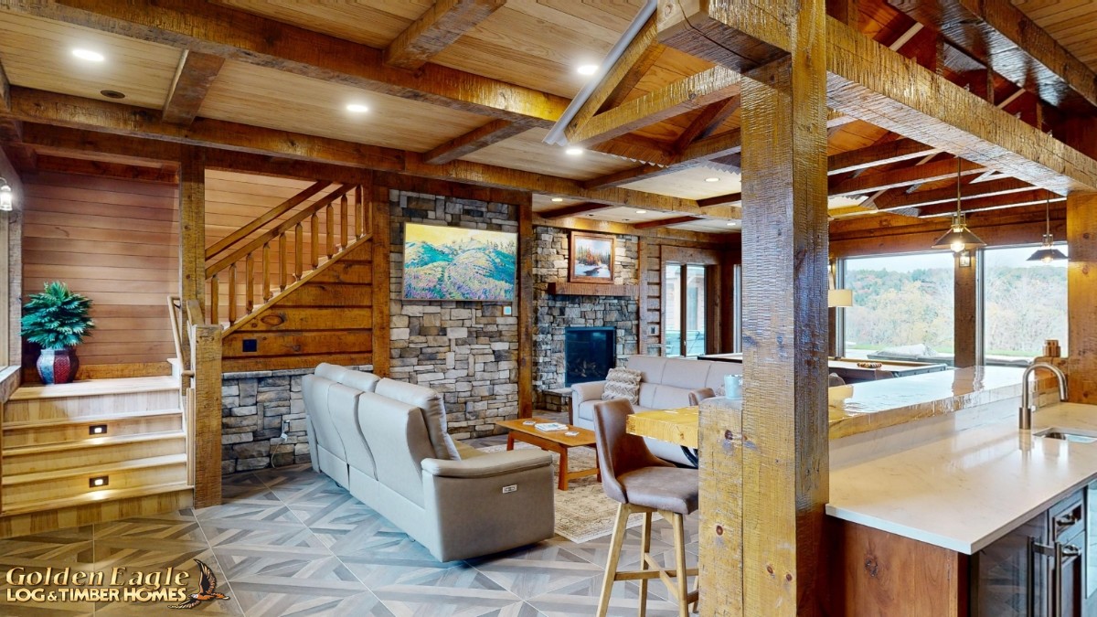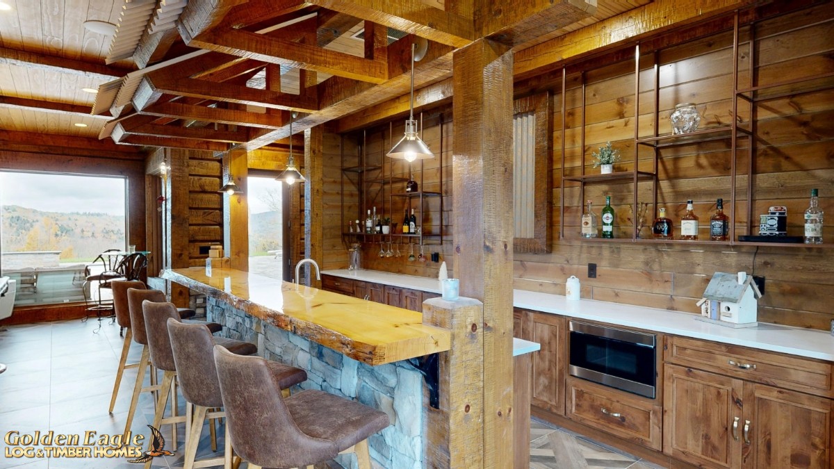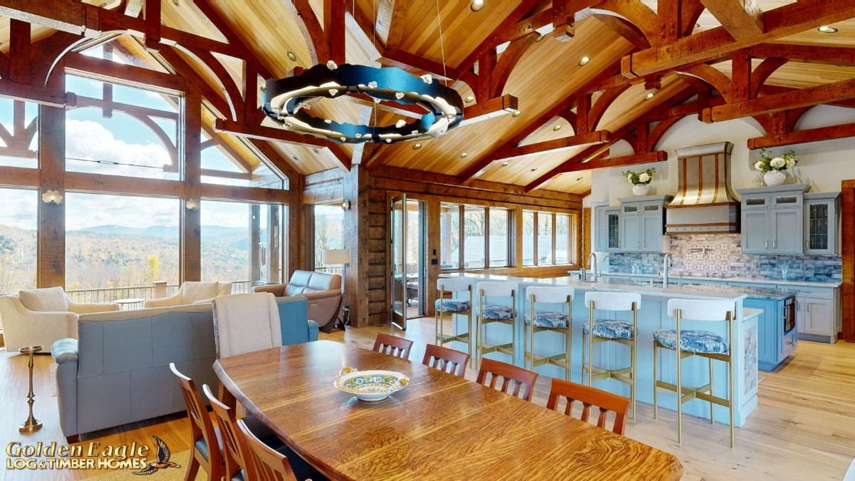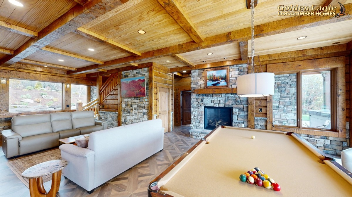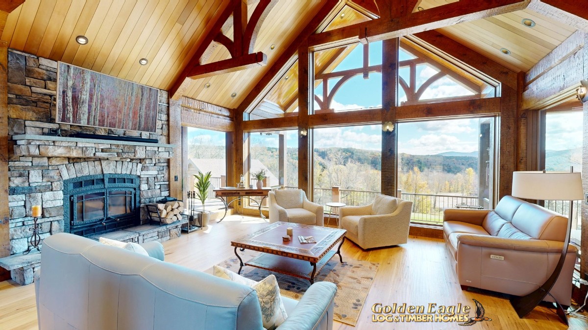 Nestled in Upstate New York on the slopes of the Catskill Mountains, this Timber Frame-style home was masterfully crafted as the ultimate mountain retreat - a serene escape from the hustle and bustle of city life. The homeowners love its seamless layout and thoughtful design, perfect for hosting unforgettable gatherings. With more entertaining space than they ever imagined, the home features a private theater, golf simulator, swimming pool, and an outdoor pavilion complete with a built-in grill and gas-fired pizza oven - an entertainer's dream for friends and a growing family.