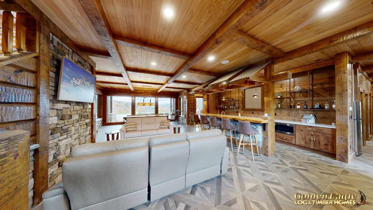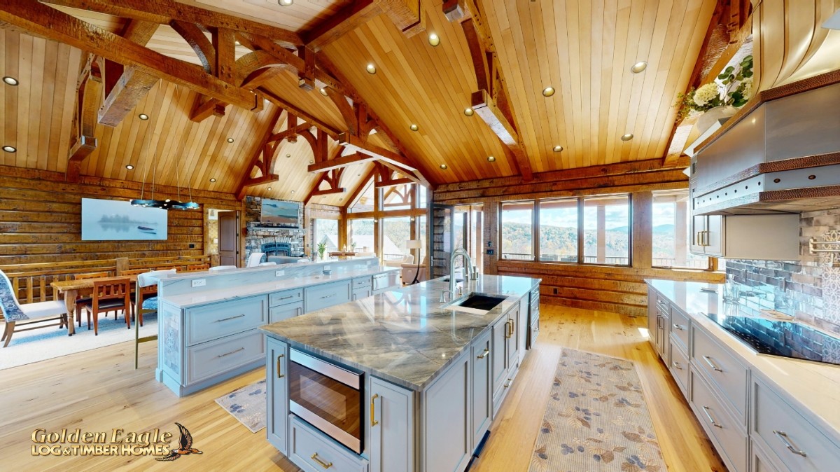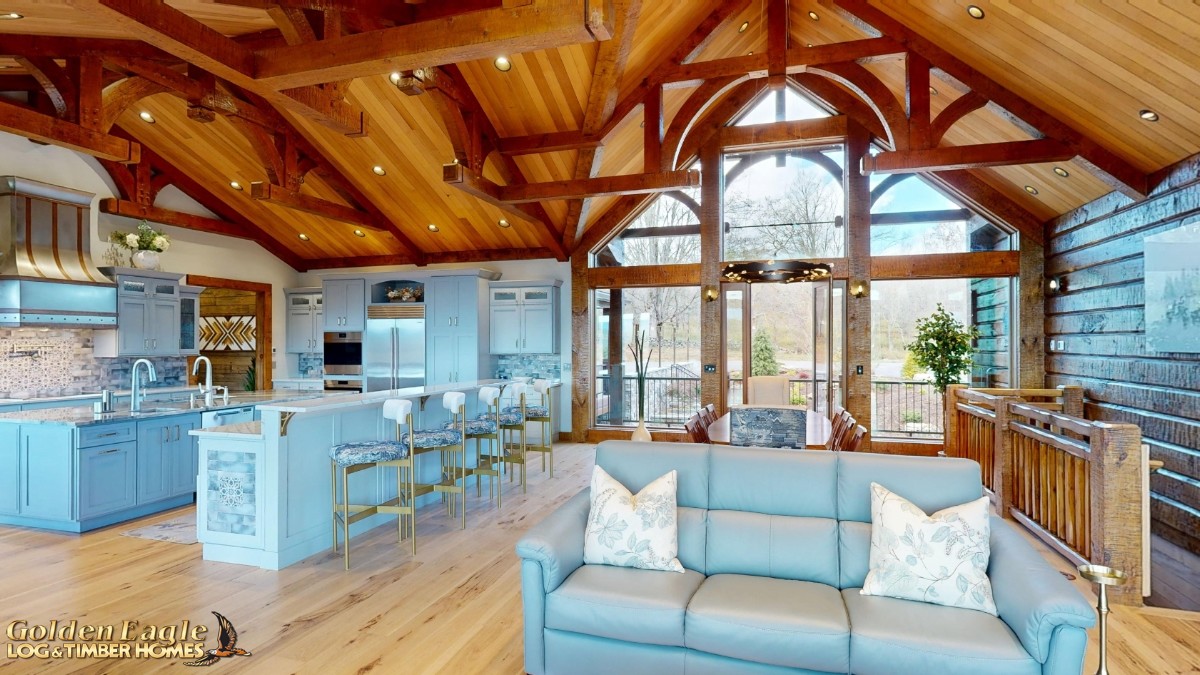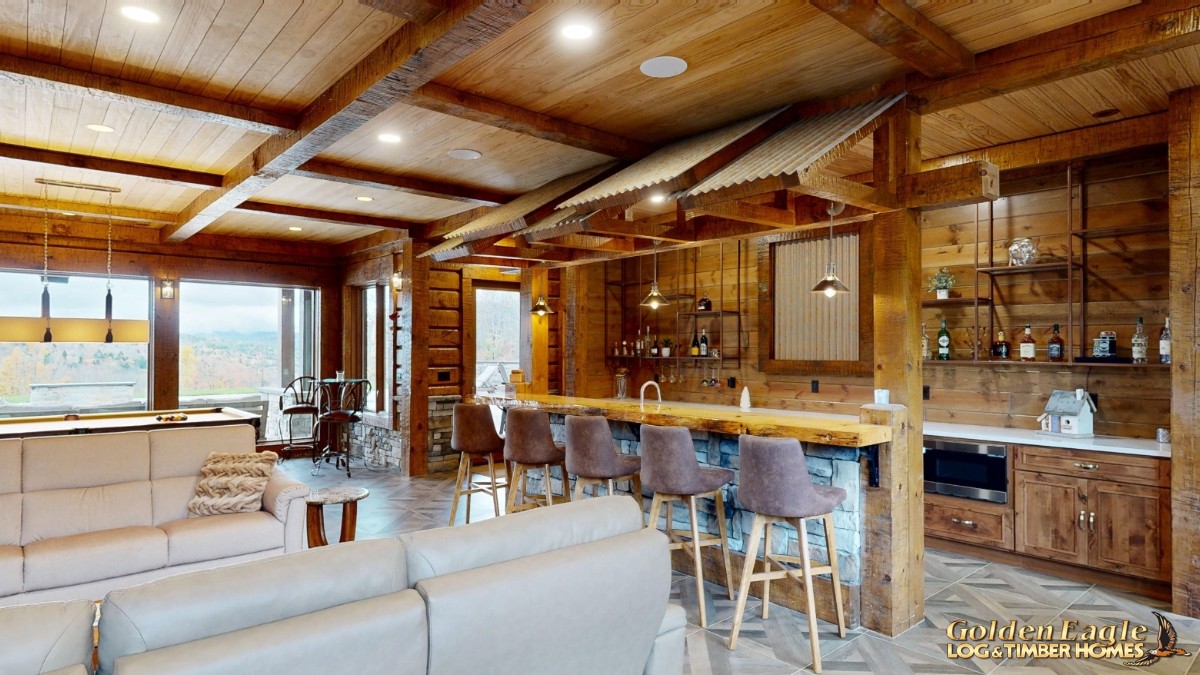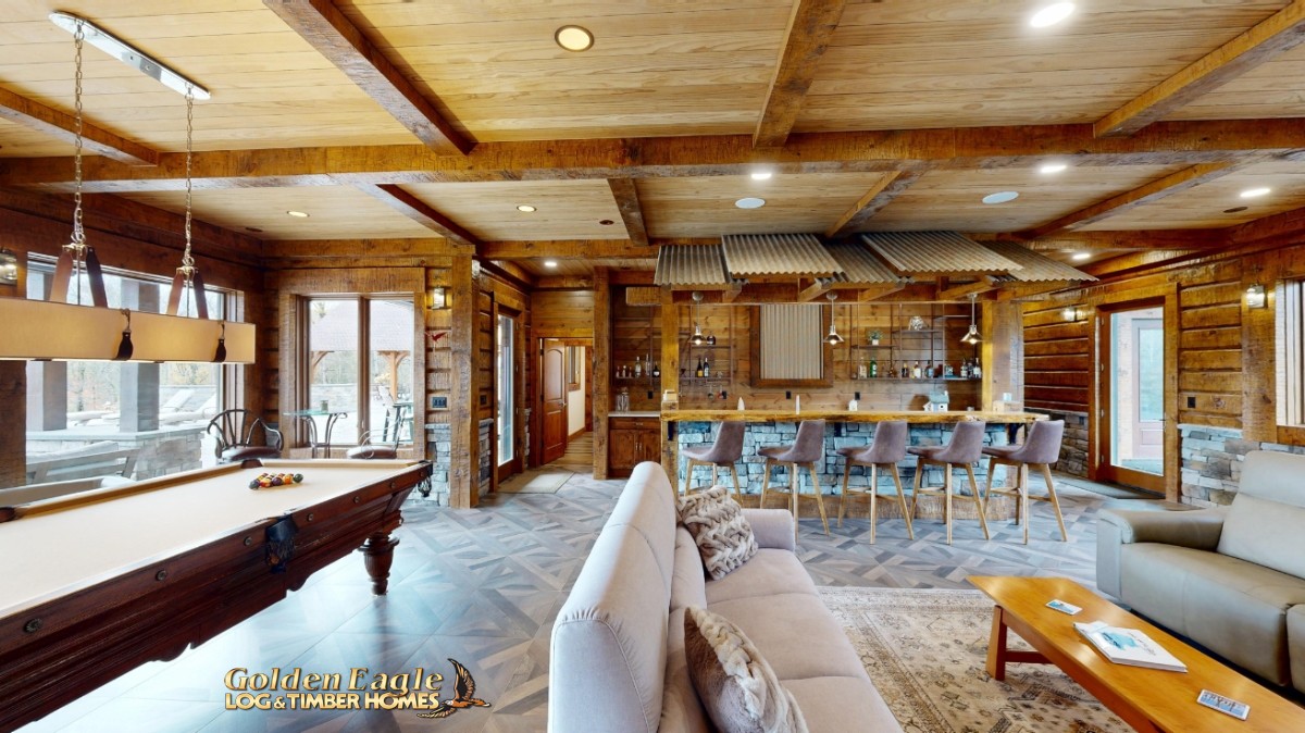 Nestled in Upstate New York on the slopes of the Catskill Mountains, this Timber Frame-style home was masterfully crafted as the ultimate mountain retreat - a serene escape from the hustle and bustle of city life. The homeowners love its seamless layout and thoughtful design, perfect for hosting unforgettable gatherings. With more entertaining space than they ever imagined, the home features a private theater, golf simulator, swimming pool, and an outdoor pavilion complete with a built-in grill and gas-fired pizza oven - an entertainer's dream for friends and a growing family.