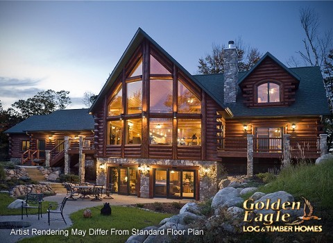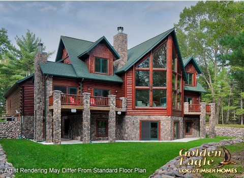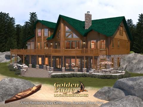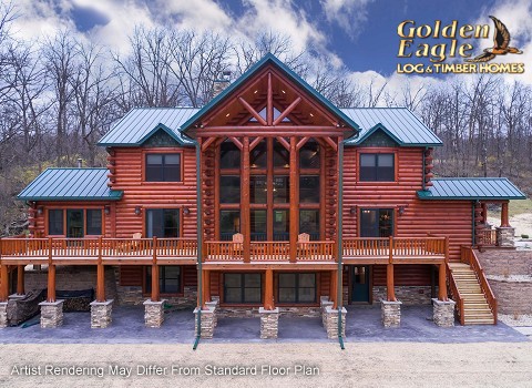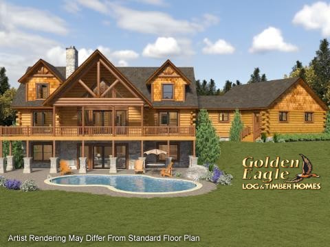 Designs can also feature lofts overlooking the great room, and this space can be turned into a reading nook, a home office, or a guest bedroom. You can customize your large log cabin plan to include a basement with space for storage, attached garages, a fitness area, a game room, or a home theater.