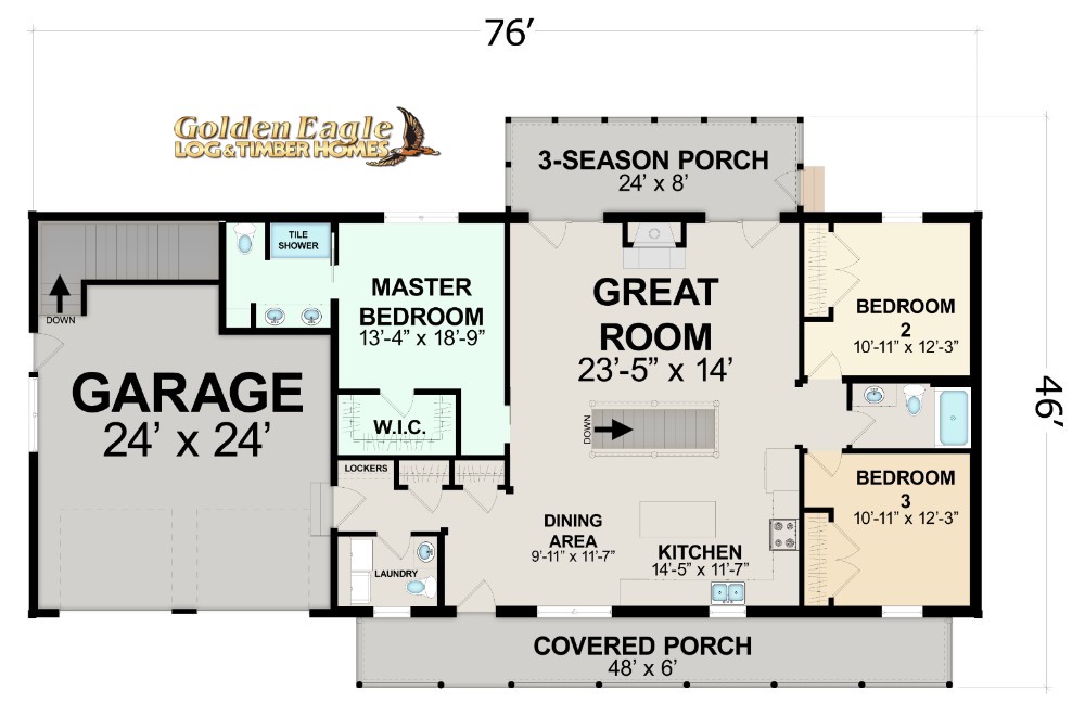 The Clearwater floor plan is one of our most popular ranch style log home plans.