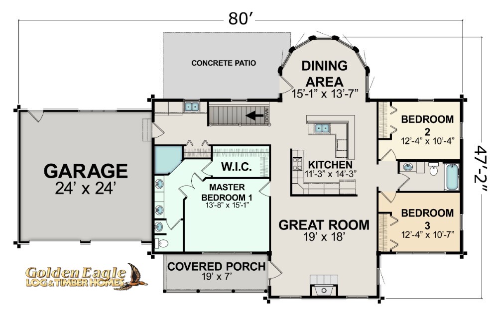 All floor plans are available in every log or timber style that we offer (square timbers, full/round-log, half/round-log, and more) |