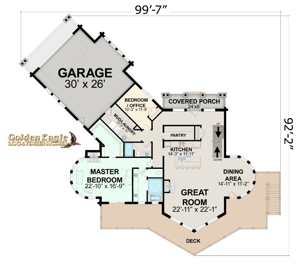 All floor plans are available in every log or timber style that we offer (square timbers, full/round-log, half/round-log, and more) |