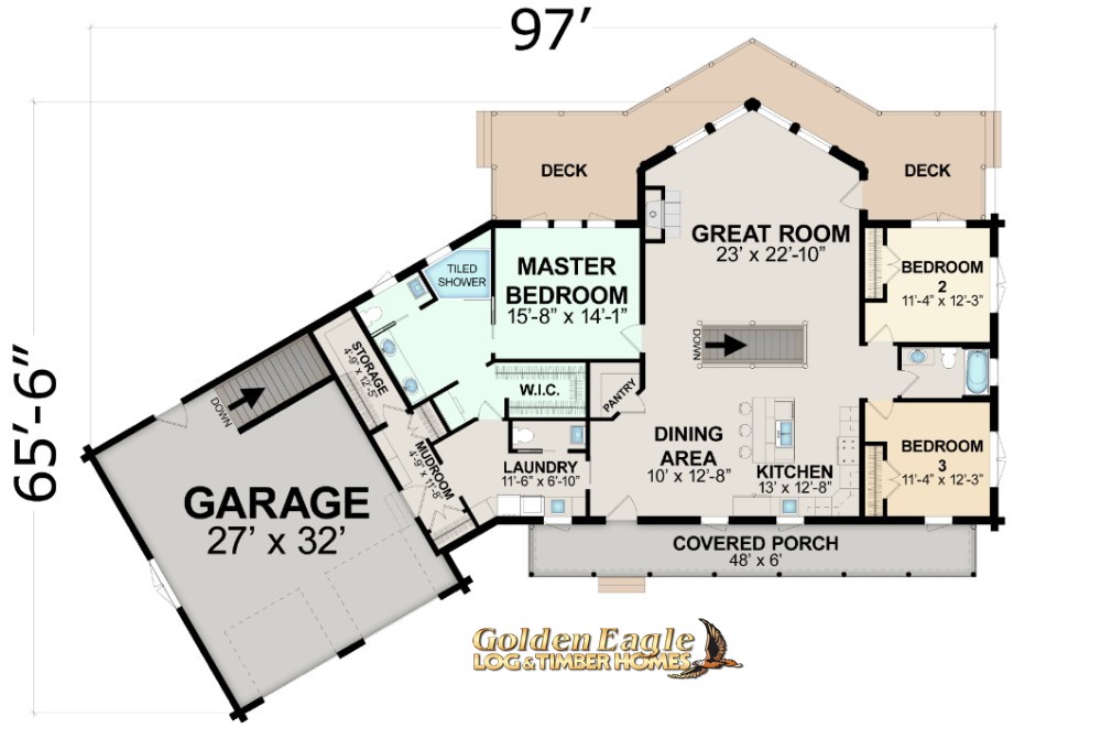 All floor plans are available in every log or timber style that we offer (square timbers, full/round-log, half/round-log, and more) |