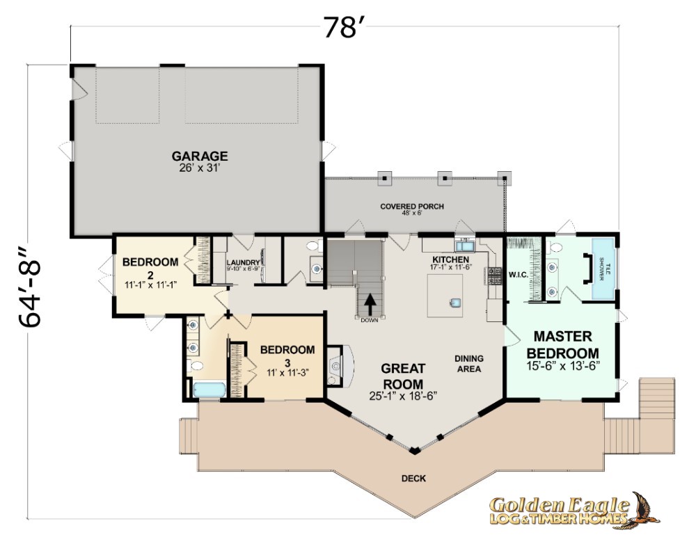 All floor plans are available in every log or timber style that we offer (square timbers, full/round-log, half/round-log, and more) |