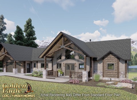 Attached garages are an option on most of these rustic timber frame house plans. Many of them have covered porches, balconies, and patios, which blend the indoor and outdoor areas for a connection to nature.