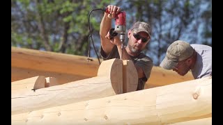 First of all, imagine that on a Golden Eagle full log home, only the first floor exterior walls are full log. Gable ends, dormers, ceiling cavities, sub floors, garage firewalls, garage walls, and all interior partition walls are conventional 2 x 6 construction. So there are few actual full log areas. But in those full log areas we have three methods for running electrical wiring.